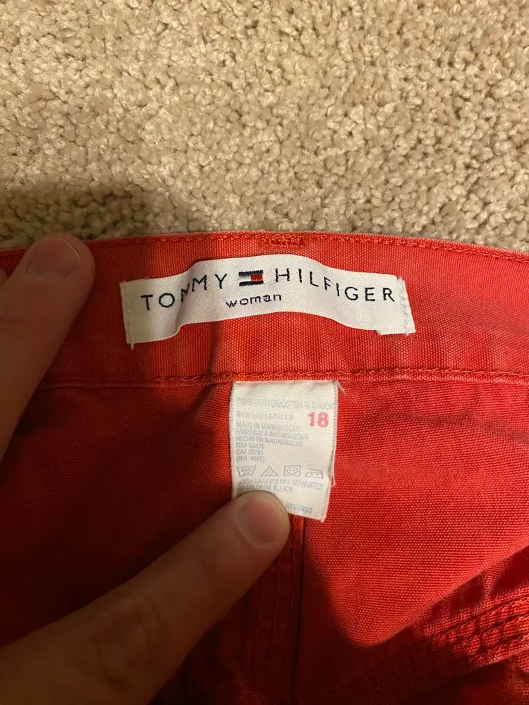 You are purchasing one pair of Women's Size 18 Coral Colored Capri Pants by Tommy Hilfiger from 2002. These Pants are in great condition with no rips, stains or holes.