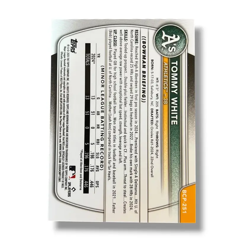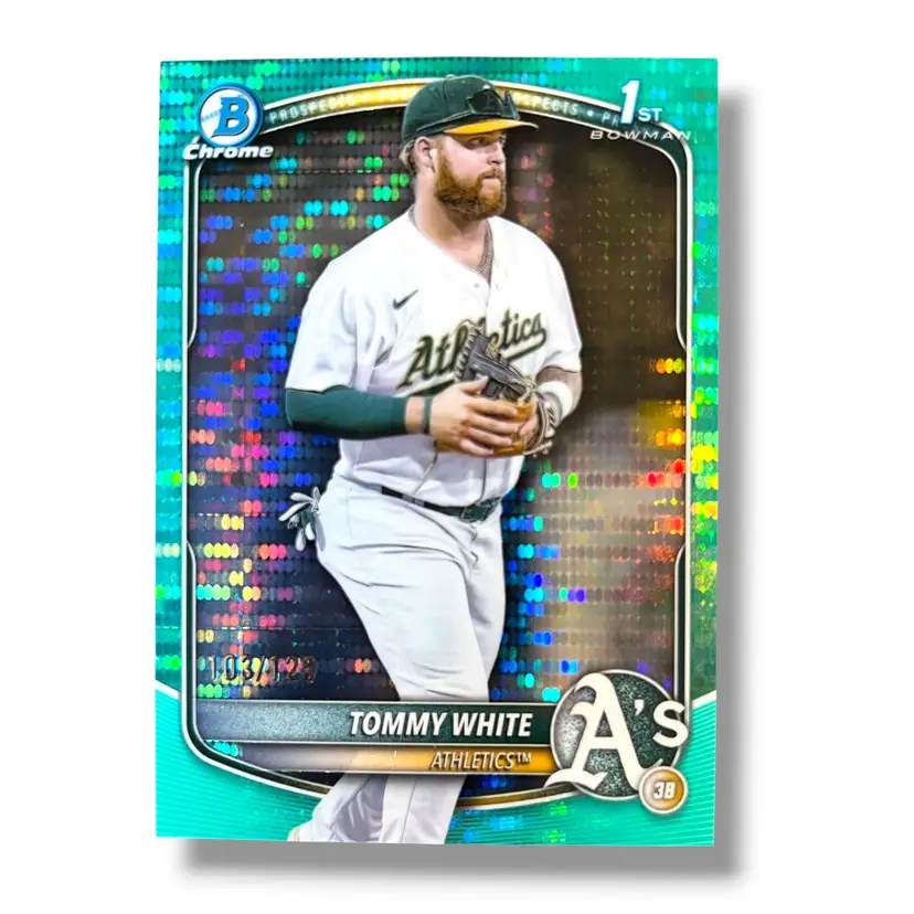 Here We Have a Tommy White 1st Bowman 2025 Bowman Chrome Aqua Pulsar Refractor 103/125
