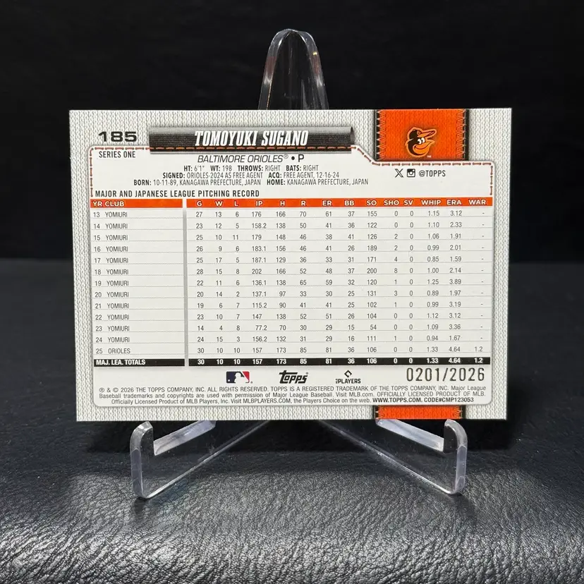 Tomoyuki Sugano 2026 Topps Series 1 #185 Gold Parallel /2026 Baltimore Orioles