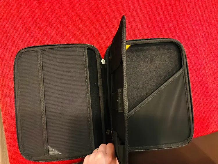 This case offers great protection for your iPad while also offering up fantastic organization for your tech gear. It has a convenient handle as well to easily carry it for work and personal use. It does fit other brands of tablets too. The “C” in the word tomtoc is no longer present on the front of the case (see close up of a photo).