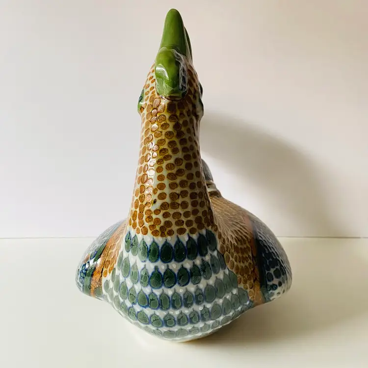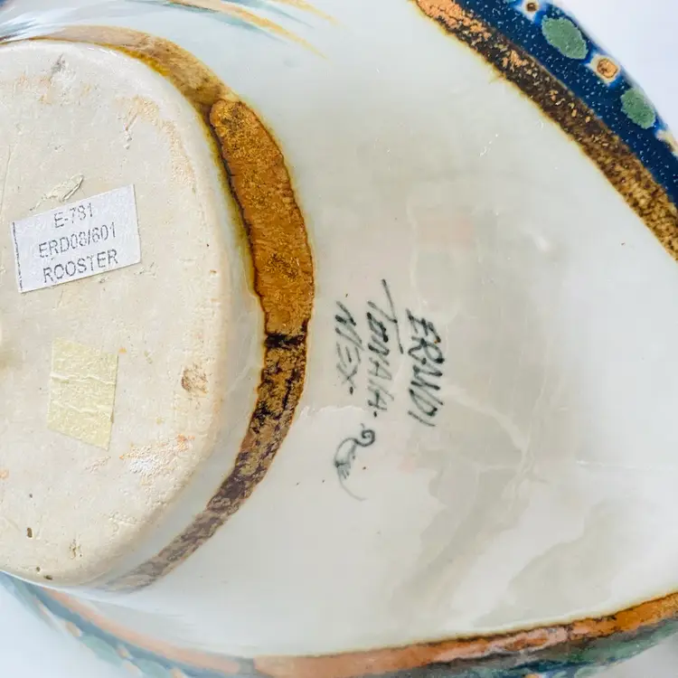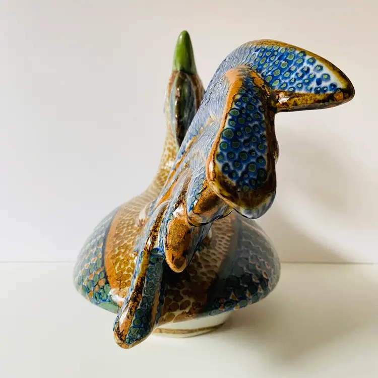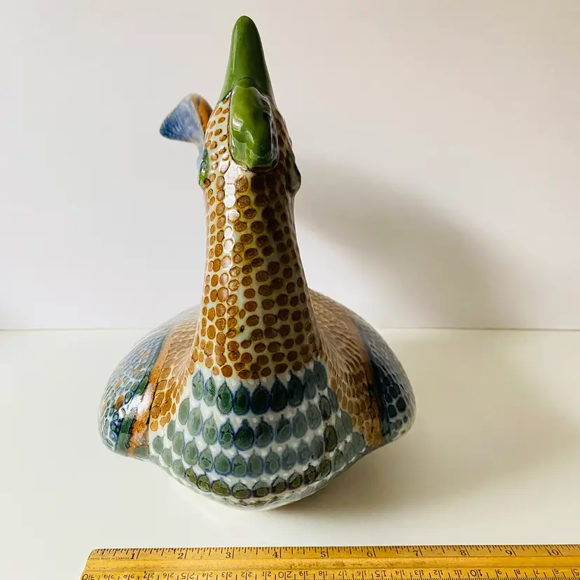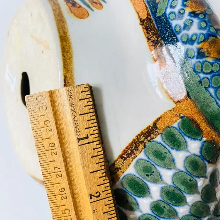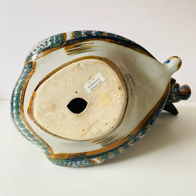 1.5" crack (shown) on the underside of the chest does not breach the glaze. Otherwise awesome.