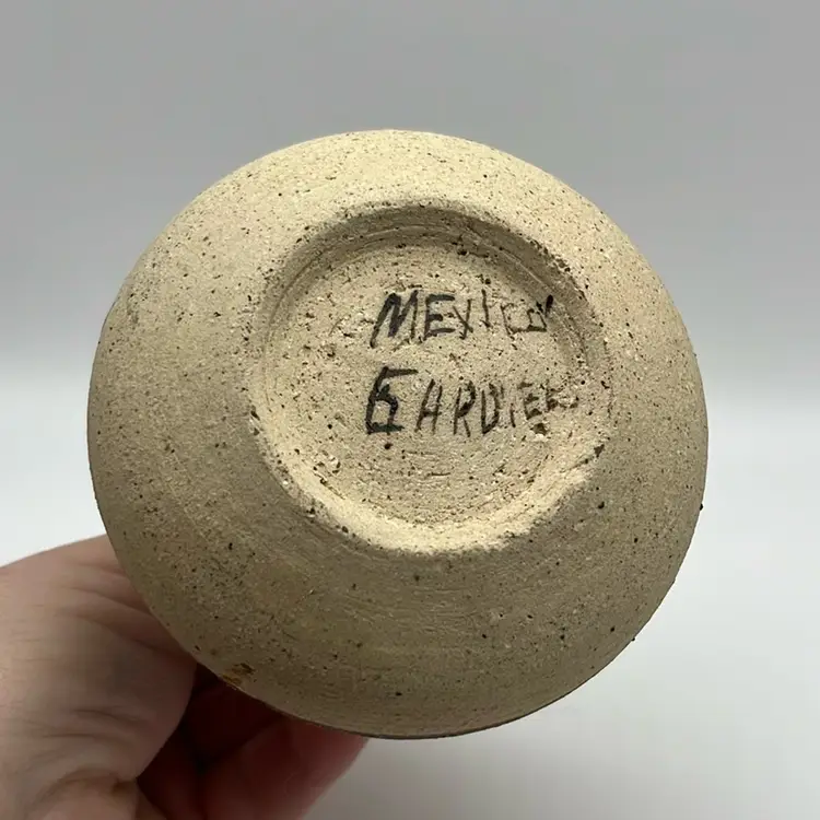 Signed Mexico Gardner? Shows a few marks (see pics) otherwise in good vintage condition. No chips or cracks. Approx. 3.5” w x 4” h
