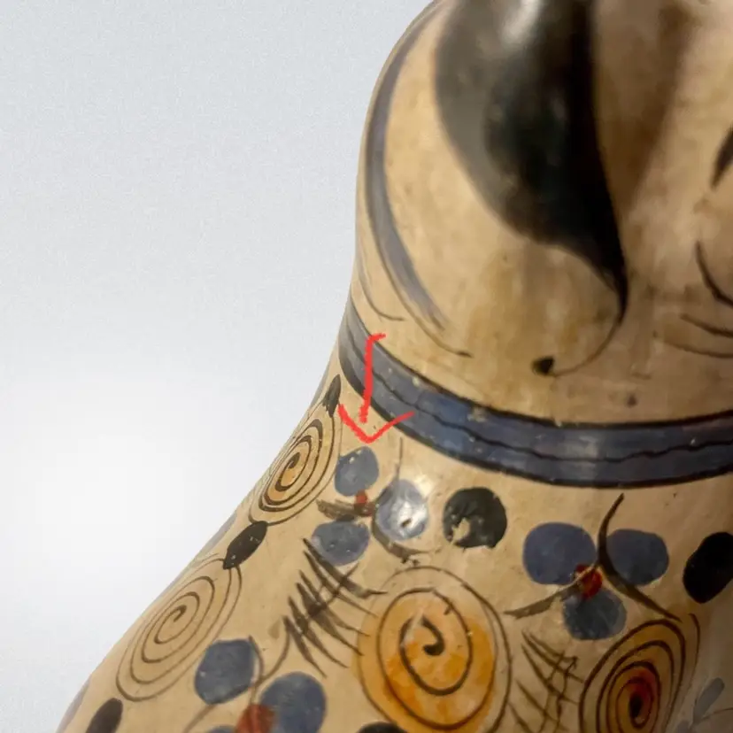Condition: Small spot on the back by the collar that has a slight rough spot. Appears to be from the manufacturing process. Measurements: Approximately 6.25” T x 6” L. Please see photos for condition and measurements, as they are part of the description. N-11 # 1907 Thank you for looking!