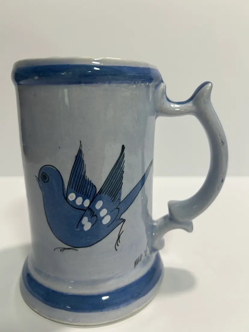 Mexican folk art hand painted mug is in mint condition and signed by the handle. It measures approximately 6” tall and 3 1/2” in diameter. (BSA8)