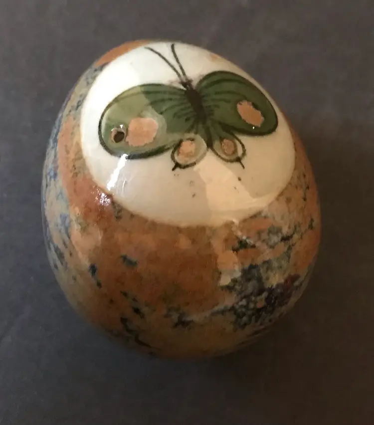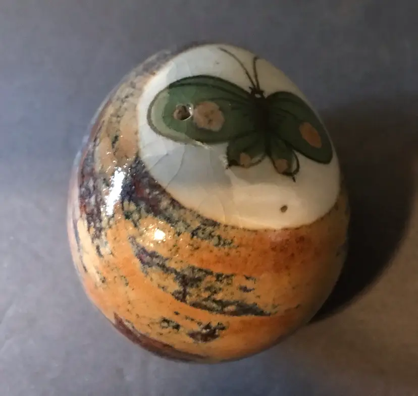 Beautiful design. Not sure purpose. There is a hole on each side. No chips or cracks