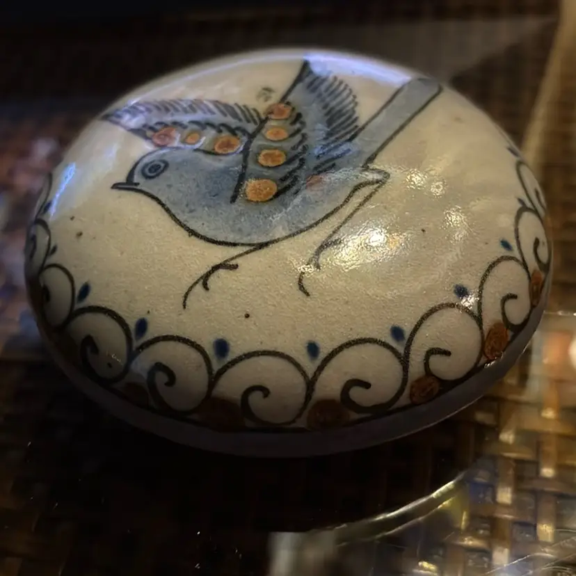 Ken Edwards signed Tonala Mexico Paperweight with Blue Bird. Measures 3.5” across , no condition issues.