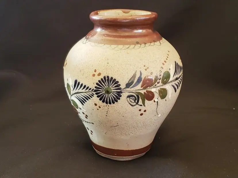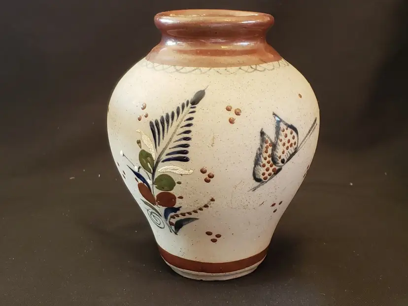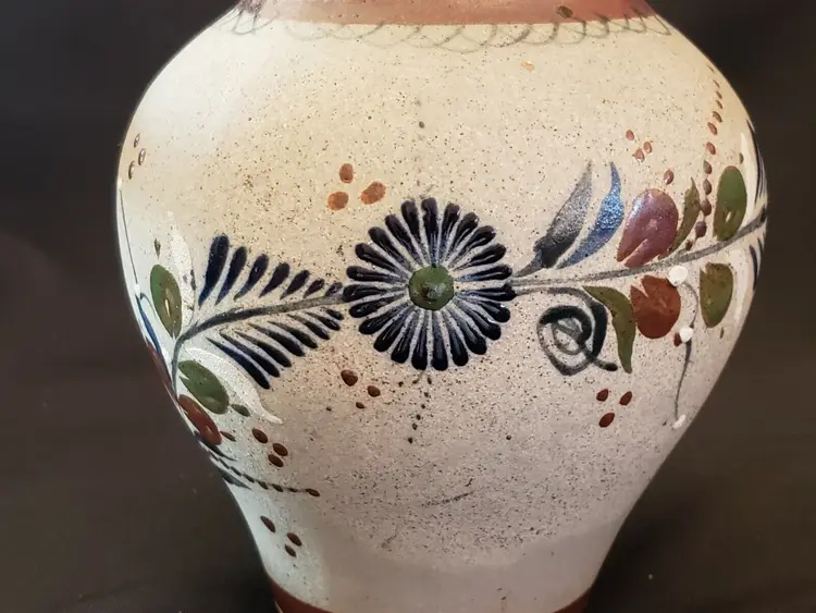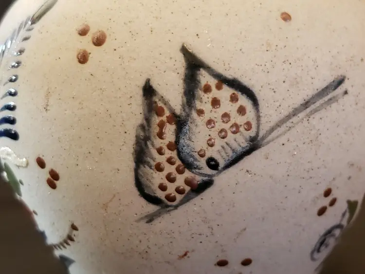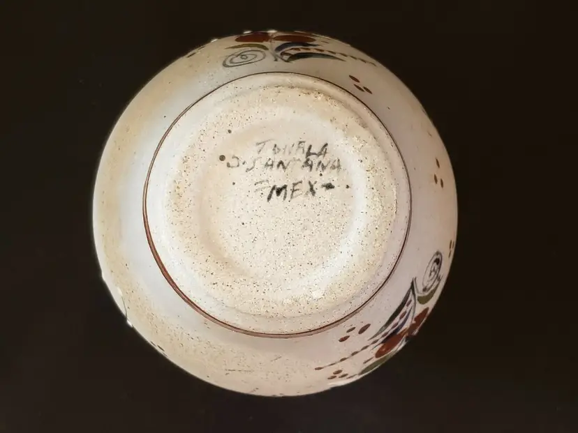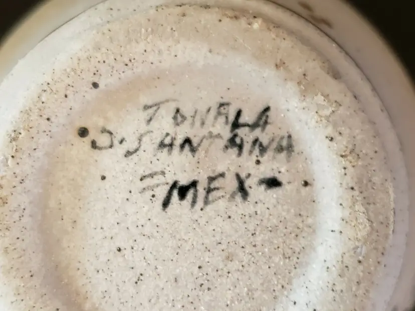 Brand: Tonala Provenance: Ownership History Not Available Country/Region of Manufacture: Mexico Handmade: Yes Modified Item: No Culture: Mexican Vintage Tonala Pottery Vase - Signed J Santana Mexico - Blue Flower Butterfly. Approximately 5 7/8" tall. Used condition with some dirt, scratches, slight bit of wear to bottom, etc. Please view all photos as they are part of the description and please ask questions prior to purchase if possible.