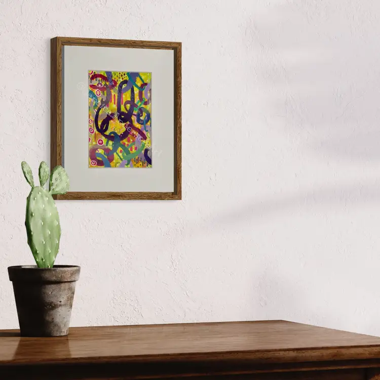 • 7” x 5” original acrylic with mixed media on Bristol Board paper, sealed and protected with two layers of archival varnish. • This painting includes a white colored 10” x 8” mat with white core bevel. • Ships flat; ready for you to take to your local framer to customize/coordinate with the decor in your space. • Frames shown in photos are for reference only; not included. • All original paintings come with a signed Certificate of Authenticity.