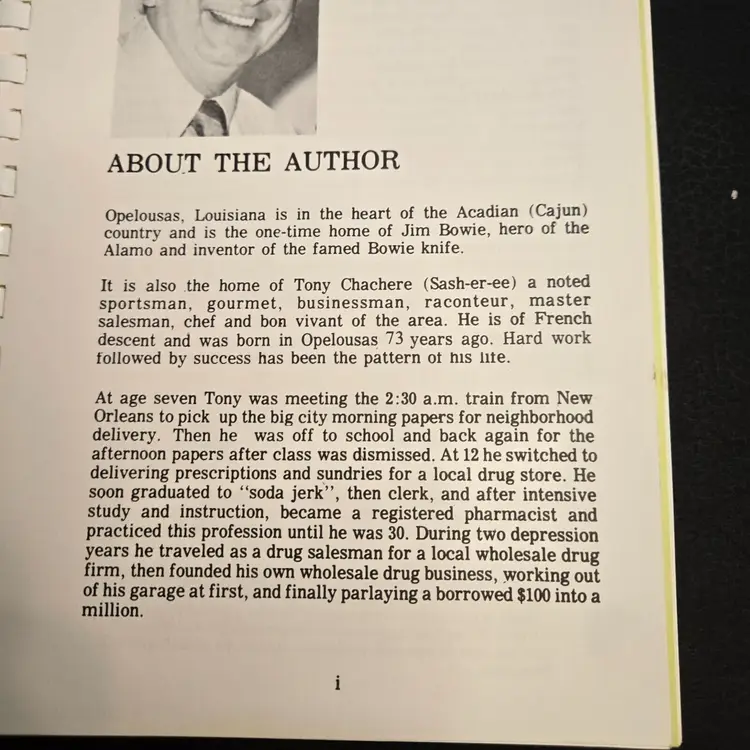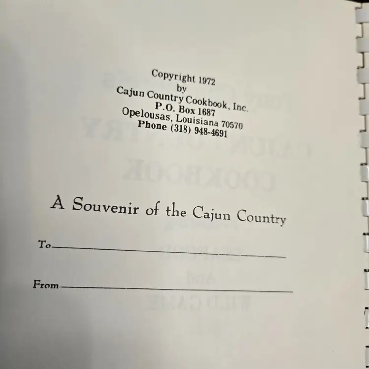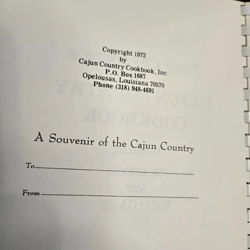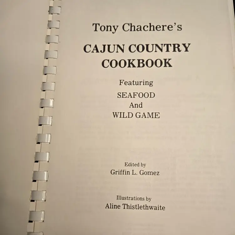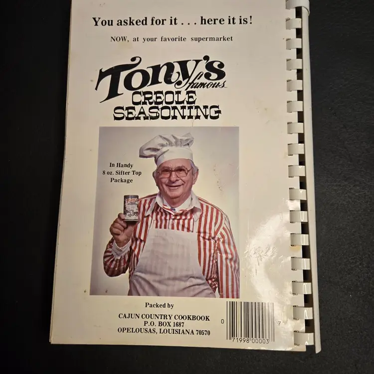 Signed By: N/A Book Title: Tony Chacheres Cajun Country Cookbook Signed: No Book Series: Cookbook Narrative Type: Nonfiction Publisher: Cajun Country Cookbook Original Language: English Intended Audience: Young Adults, Adults Inscribed: No Publication Year: 1996 Type: Cookbook Format: Paperback Language: English Author: Edited by Griffin L Gomez Features: Illustrated, Ring/Wire Bound Genre: Cookbooks, Food & Drink Topic: Food, Tony Chacheres Cajun Country Recipes Country/Region of Manufacture: United States Number of Pages: 196