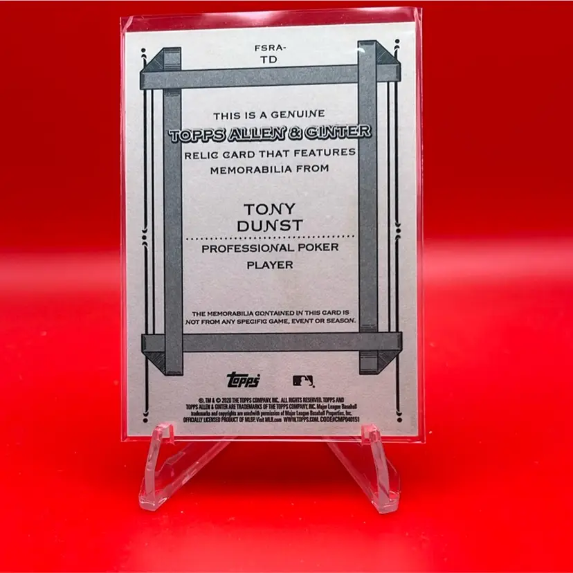 Tony Dunst 2020 Topps Allen & Ginter Full Size Relic - Poker Player