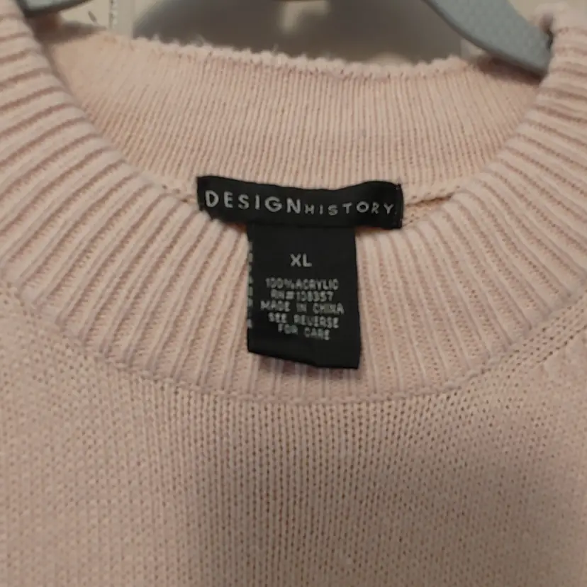 Top- Brand: Design History. Pink sweater. Size XL. Material- 100% acrylic. No callouts.