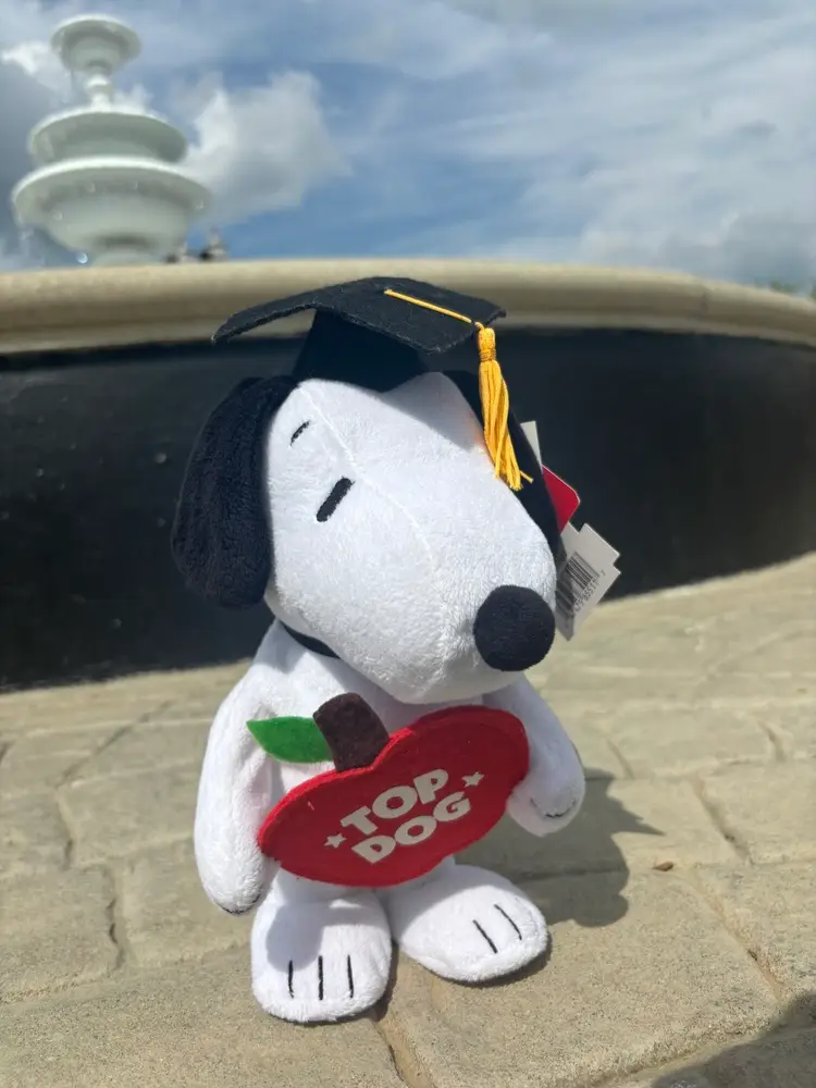 This is a really cute graduation Snoopy. He is holding an apple that says “Top Dog” and plays Pomp and Circumstance as seen in the video. I believe he is supposed to be animated as well, but that part is not working. New with tags. Add him to your collection or gift him to the graduate in your life!