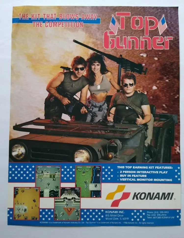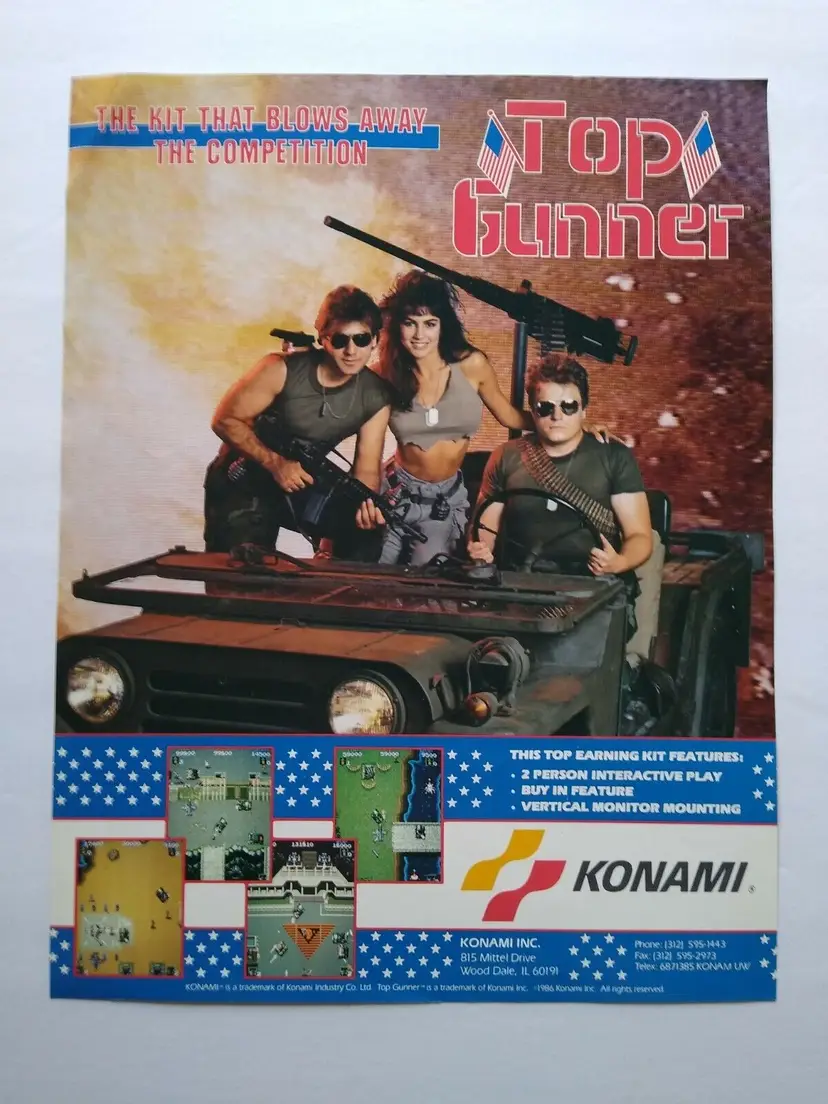 Arcade: Flyer Theme: Retro Gaming Modified Item: No Country/Region of Manufacture: United States Original/Reproduction: Original Year: 1986 Game Title: Top Gunner Brand: Konami