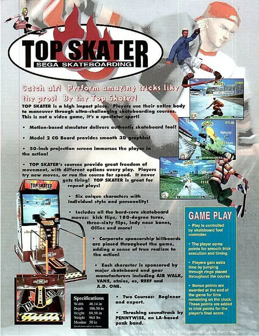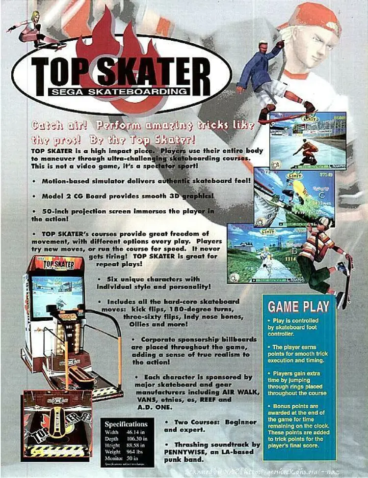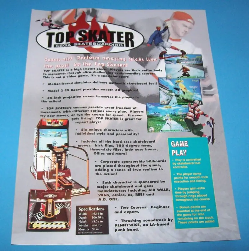 Arcade: Flyer Modified Item: No Country/Region of Manufacture: United States Original/Reproduction: Original Year: 1997 Game Title: Top Skater Brand: Sega