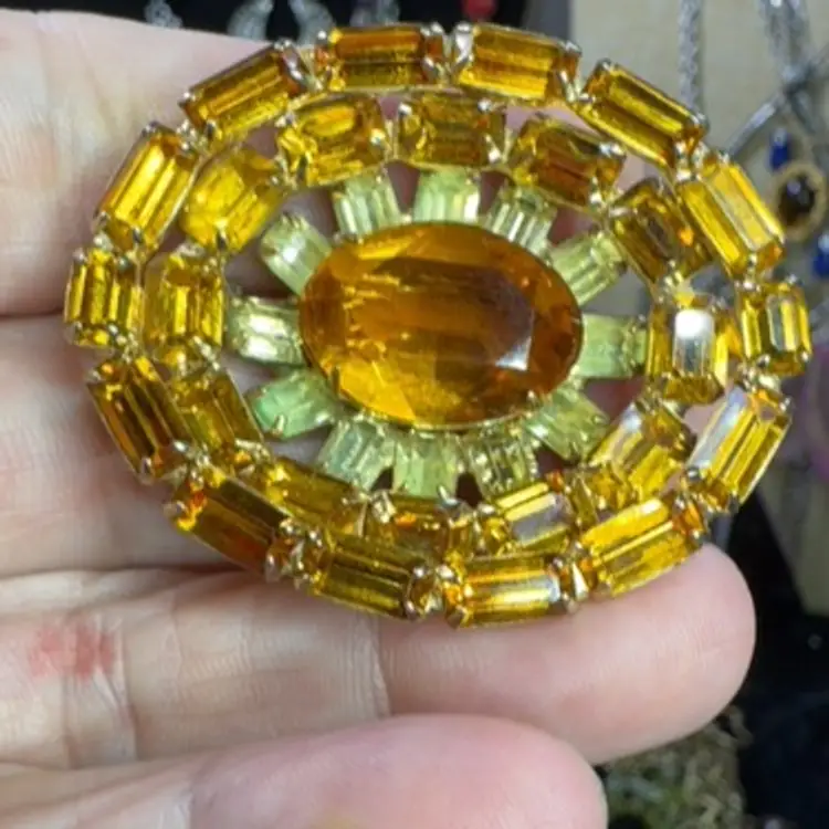 Topaz Amber Rhinestone Oval Brooch