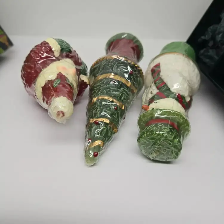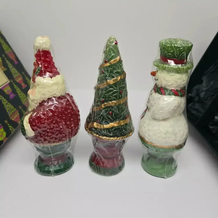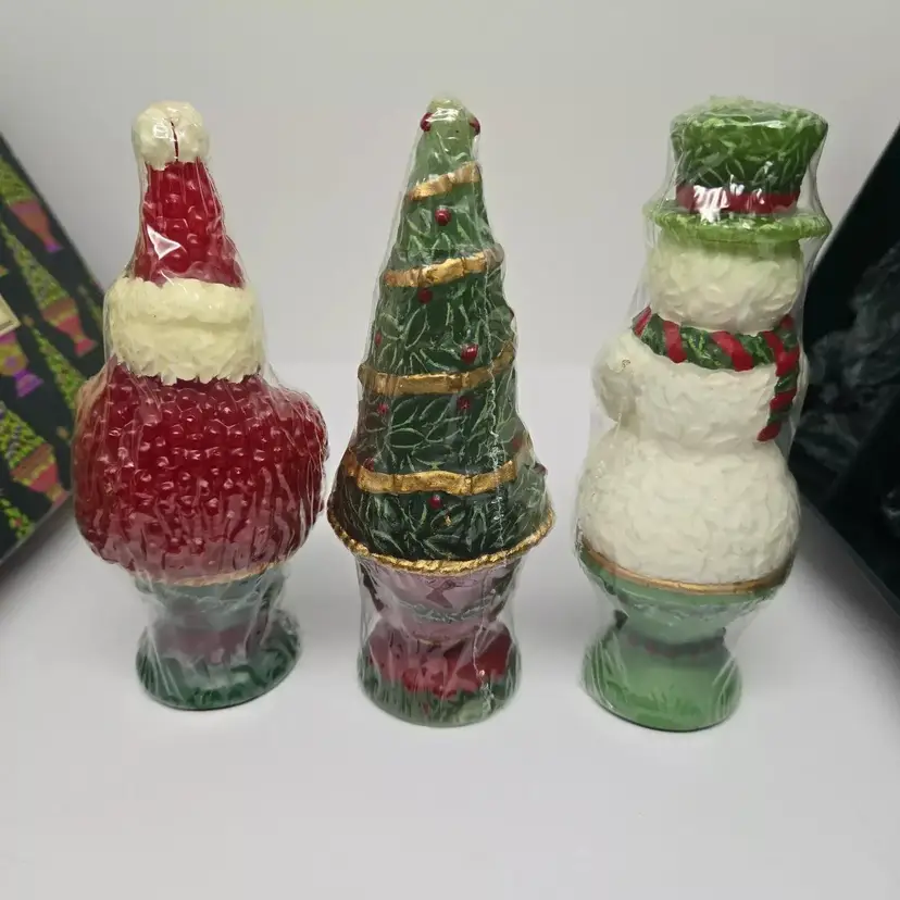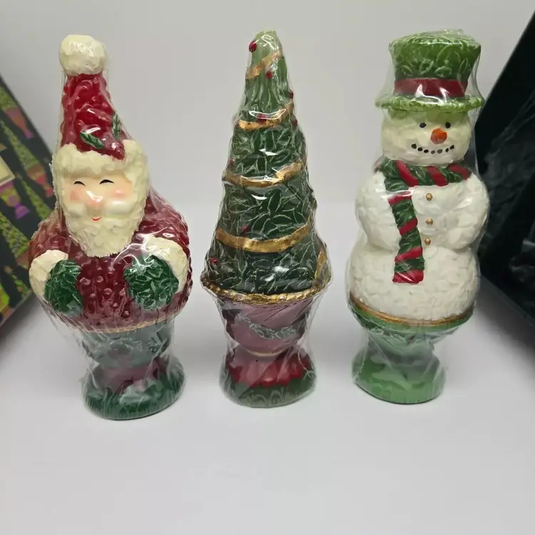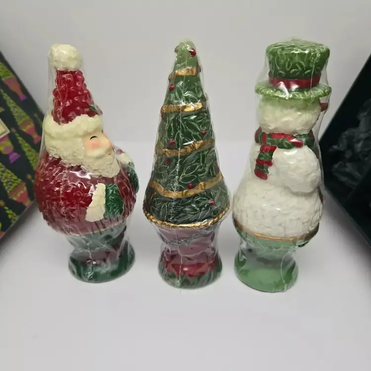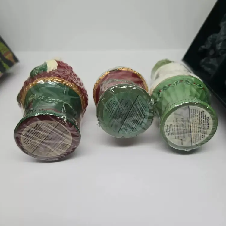 Each candle is still in its original plastic wrapping and has not been used. There may be some staining, but I'm unclear if they came that way or if it due to age.