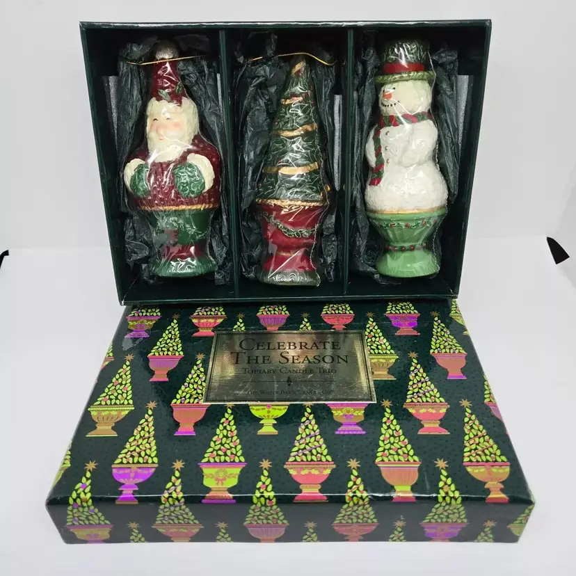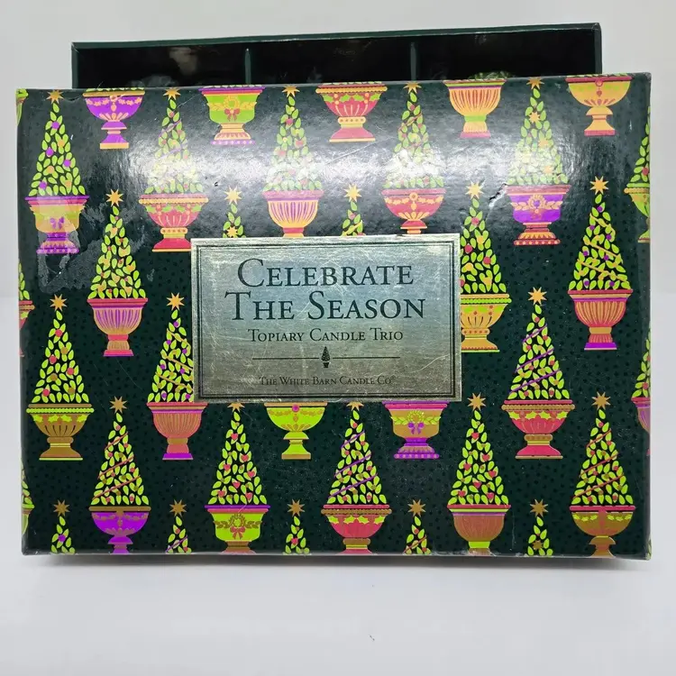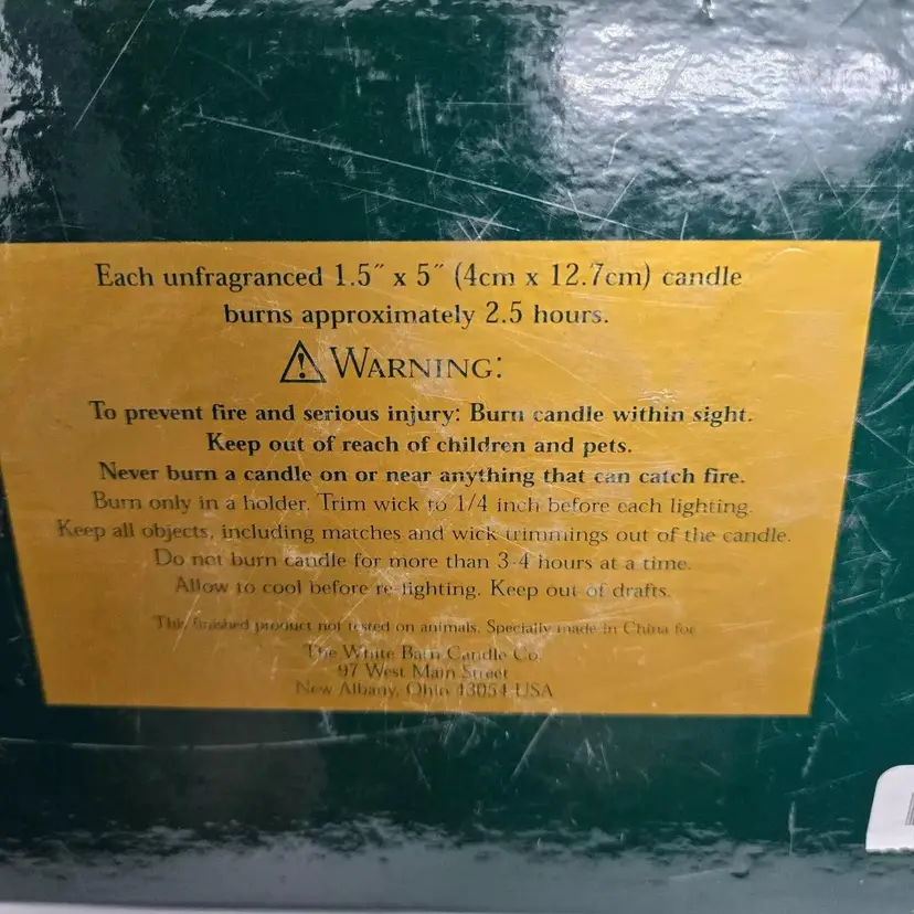 Each candle is about 5" tall x about 1.5" in diameter. According to the box, the burn time for each is about 2.5 hours. Its original box is about 5.5" x 7.75" x about 3".