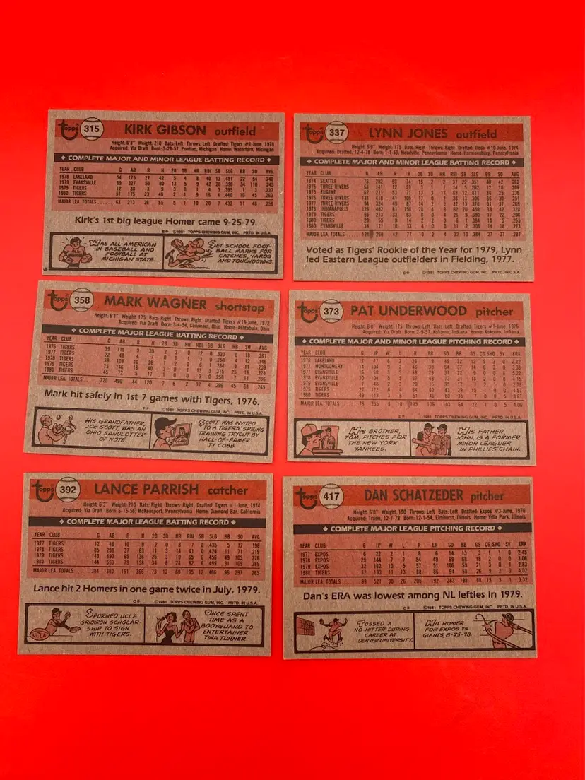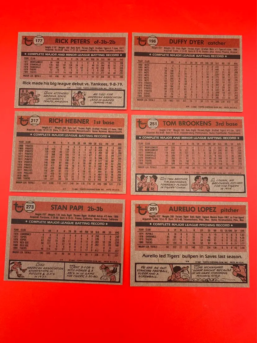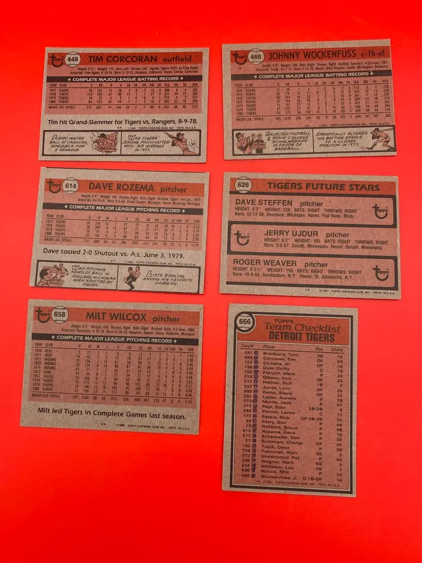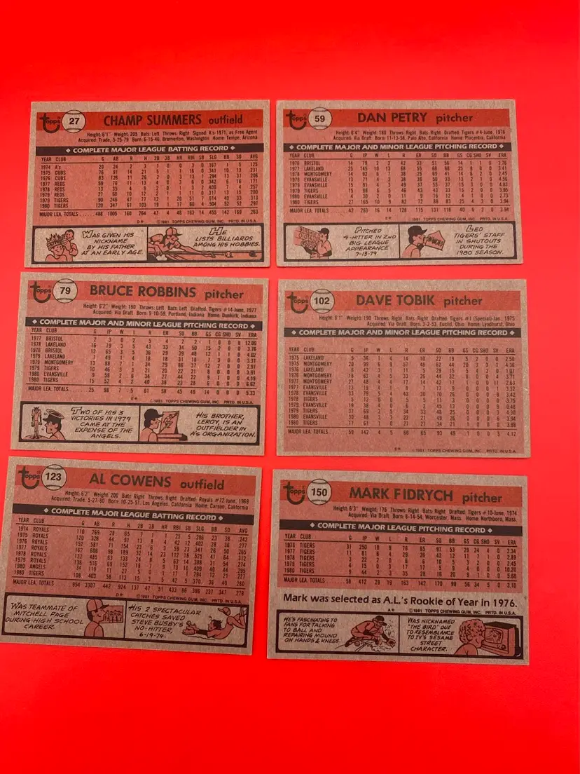 You are purchasing a lot of 24 different MLB Detroit Tigers Trading Cards from the 1981 Topps line. These Cards are in overall good condition. See images for each Card included in this Listing and their condition.