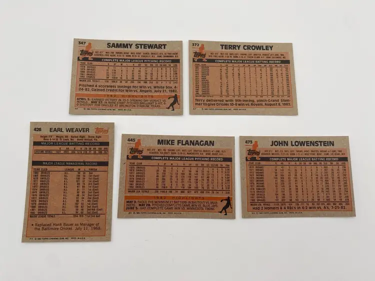 You are purchasing a lot of 15 different MLB Baltimore Orioles Trading Cards from the Topps 1983 Line. These Cards are in good condition with no creasing or ripping.