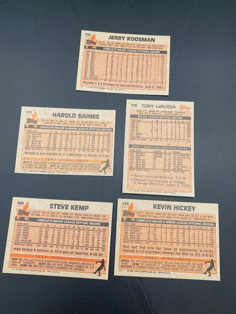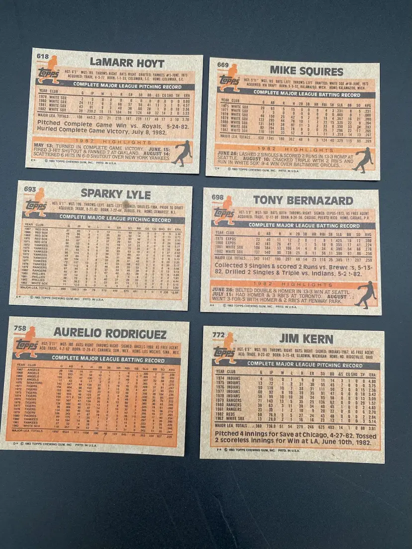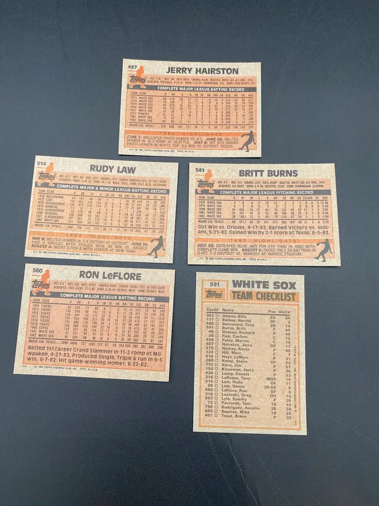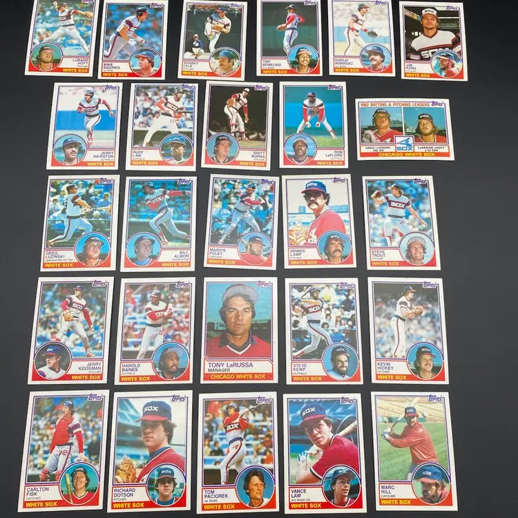 You are purchasing a lot of an MLB Chicago White Sox Complete 26 Trading Card Team Set from the Topps 1983 line. See images for all of the Cards included in this listing. These Cards are in good condition with no creases or rips.