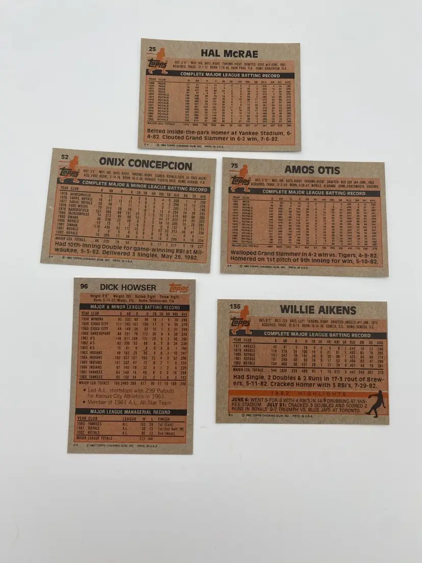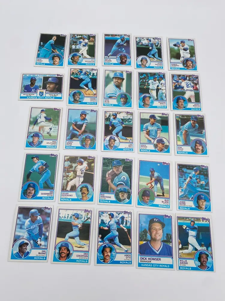 You are purchasing a Complete 25 Card MLB Kansas City Royals Trading Card Team Set from the 1983 Topps line. See images for all of the Cards included in this Listing. These Cards are in great condition with no creasing, staining or ripping.
