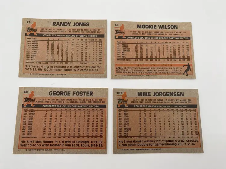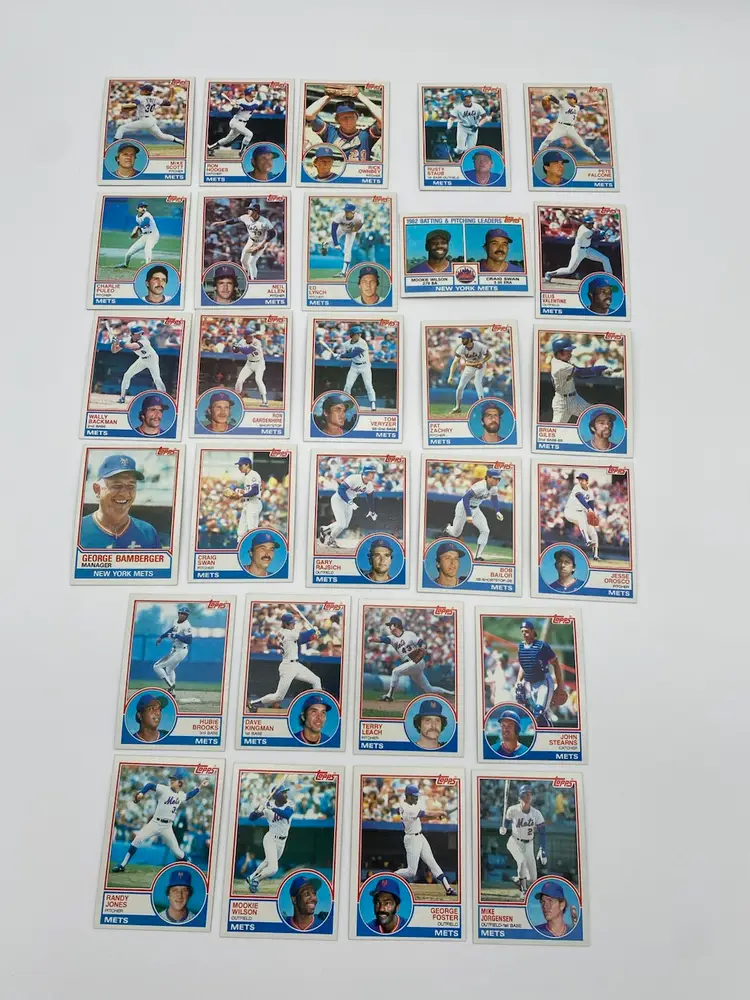 You are purchasing one complete 28 Card Set of MLB New York Mets Trading Cards from the 1983 Topps line. See images for all of the Cards included in this listing. These Cards are in great condition with no creasing, staining, ripping or corner/edge wear.