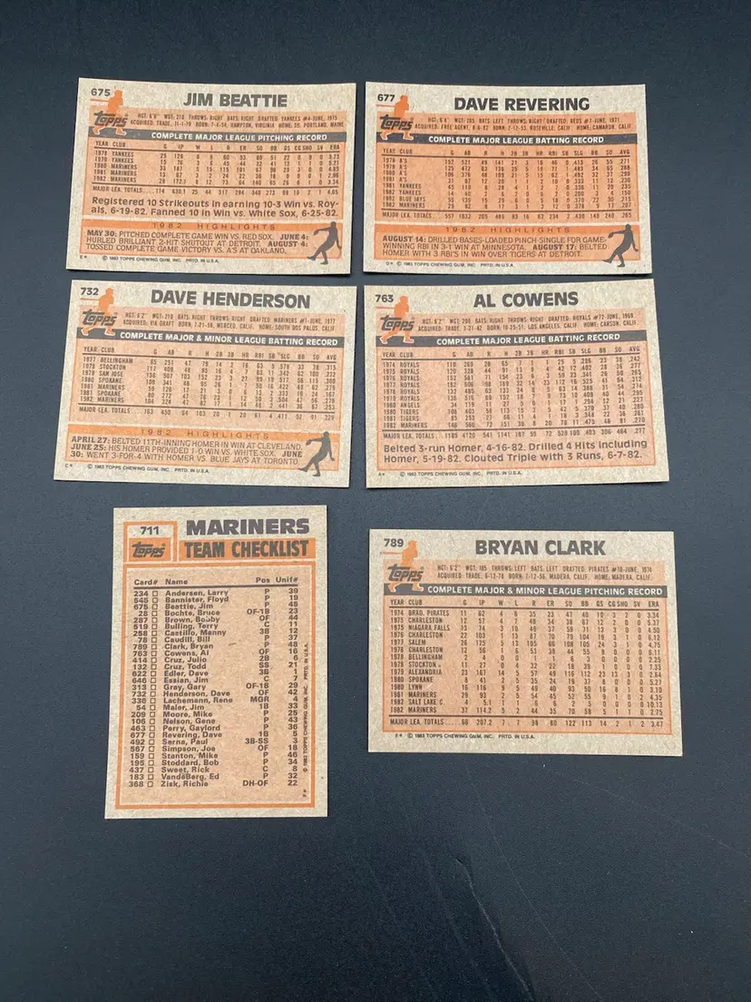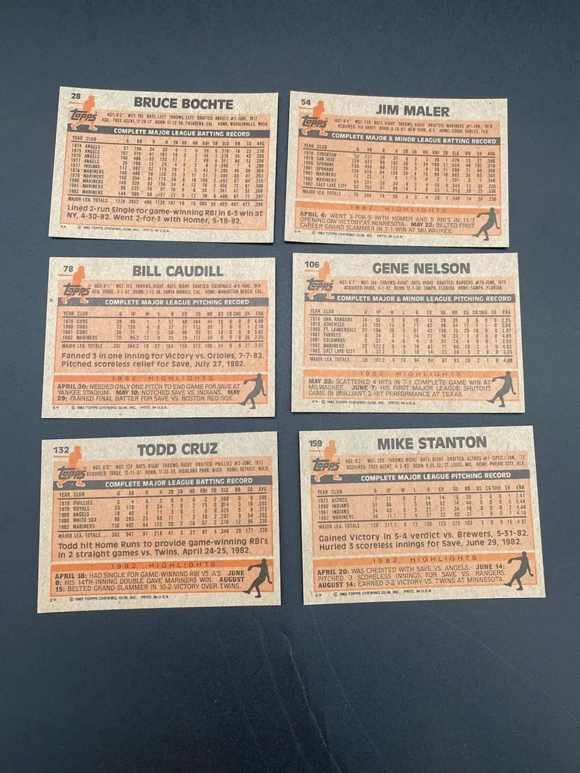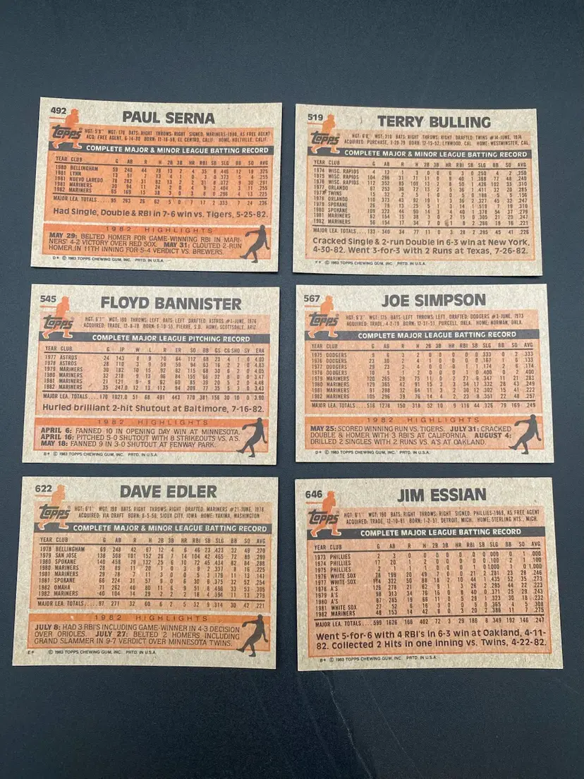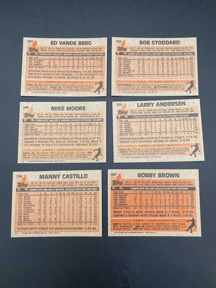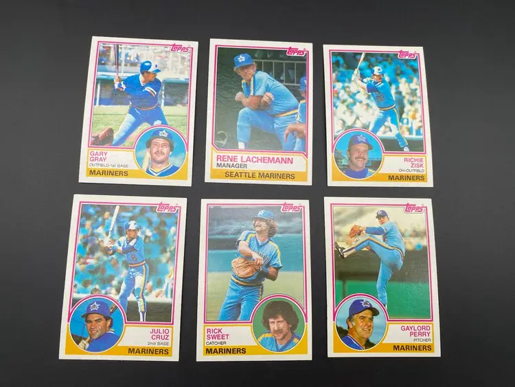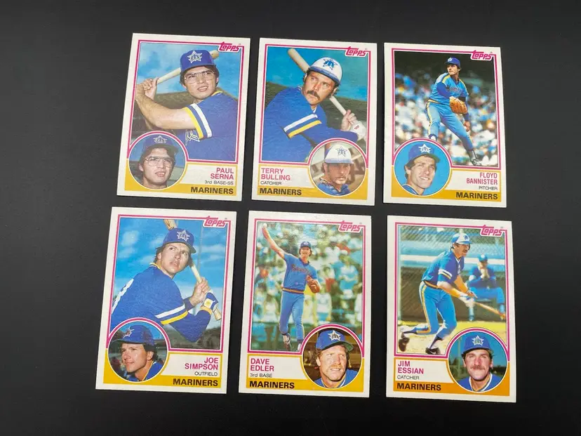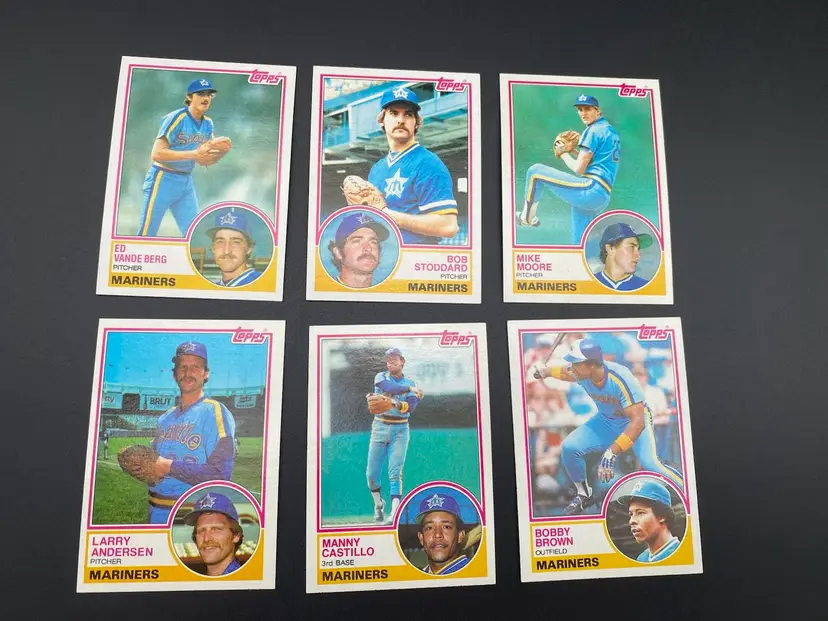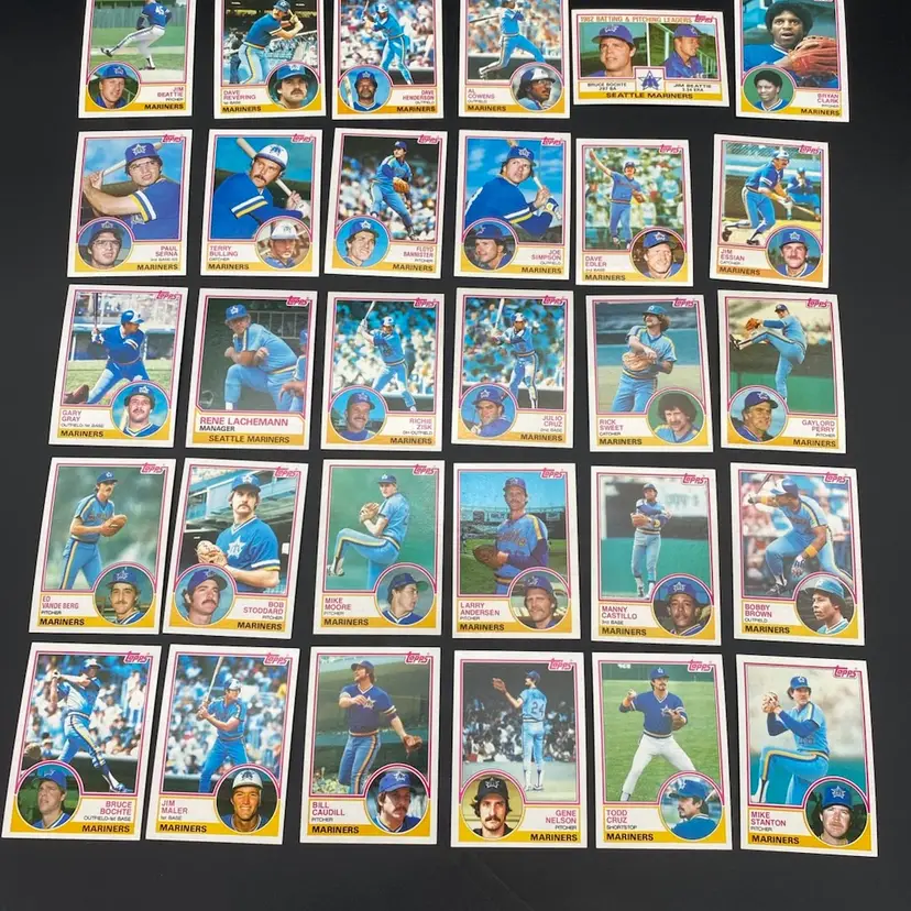 You are purchasing a lot of an MLB Seattle Mariners Complete Trading Card Team Set from the Topps 1983 line. See images for all of the Cards included in this listing. These Cards are in good condition with no creases or rips.
