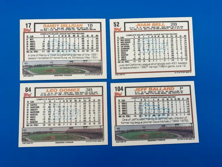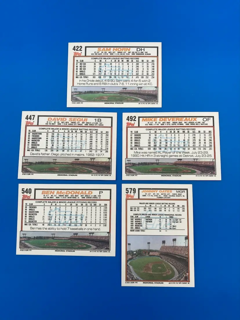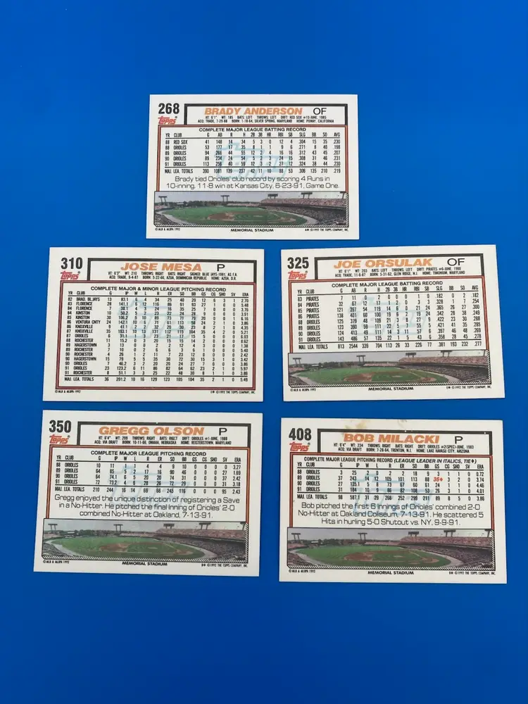 You are purchasing a lot of 23 different MLB Baltimore Orioles Trading Cards from the 1992 Topps line. These Cards are in overall great condition. See images for all of the Cards included in this Listing and their condition.