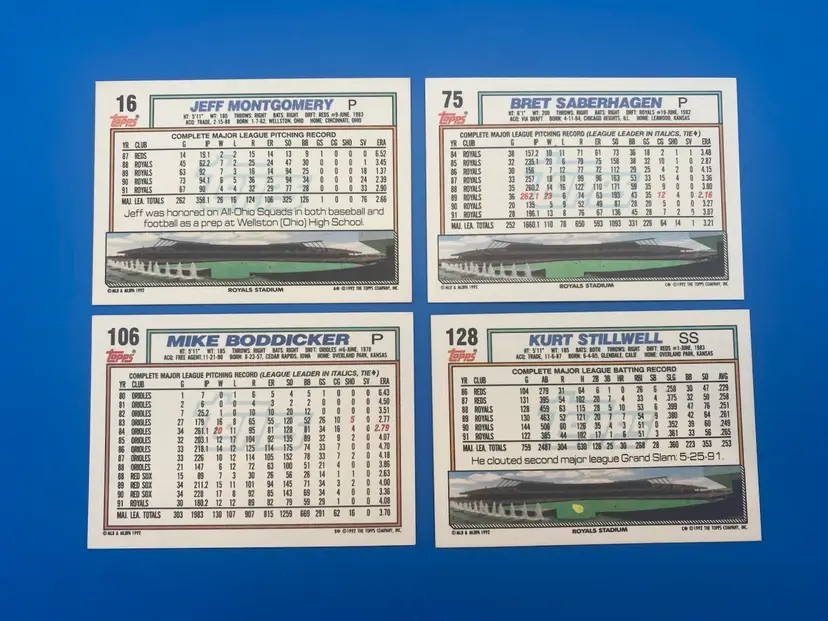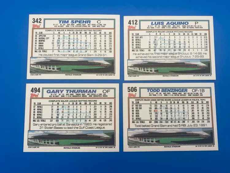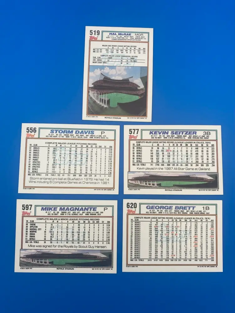 You are purchasing a lot of 22 different MLB Kansas City Royals Trading Cards from the 1992 Topps line. These Cards are in overall great condition. See images for the Cards that are included in this listing and their condition.