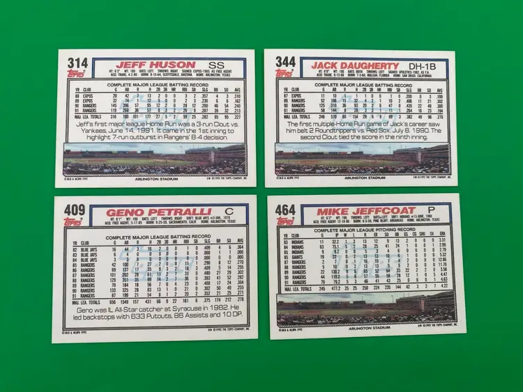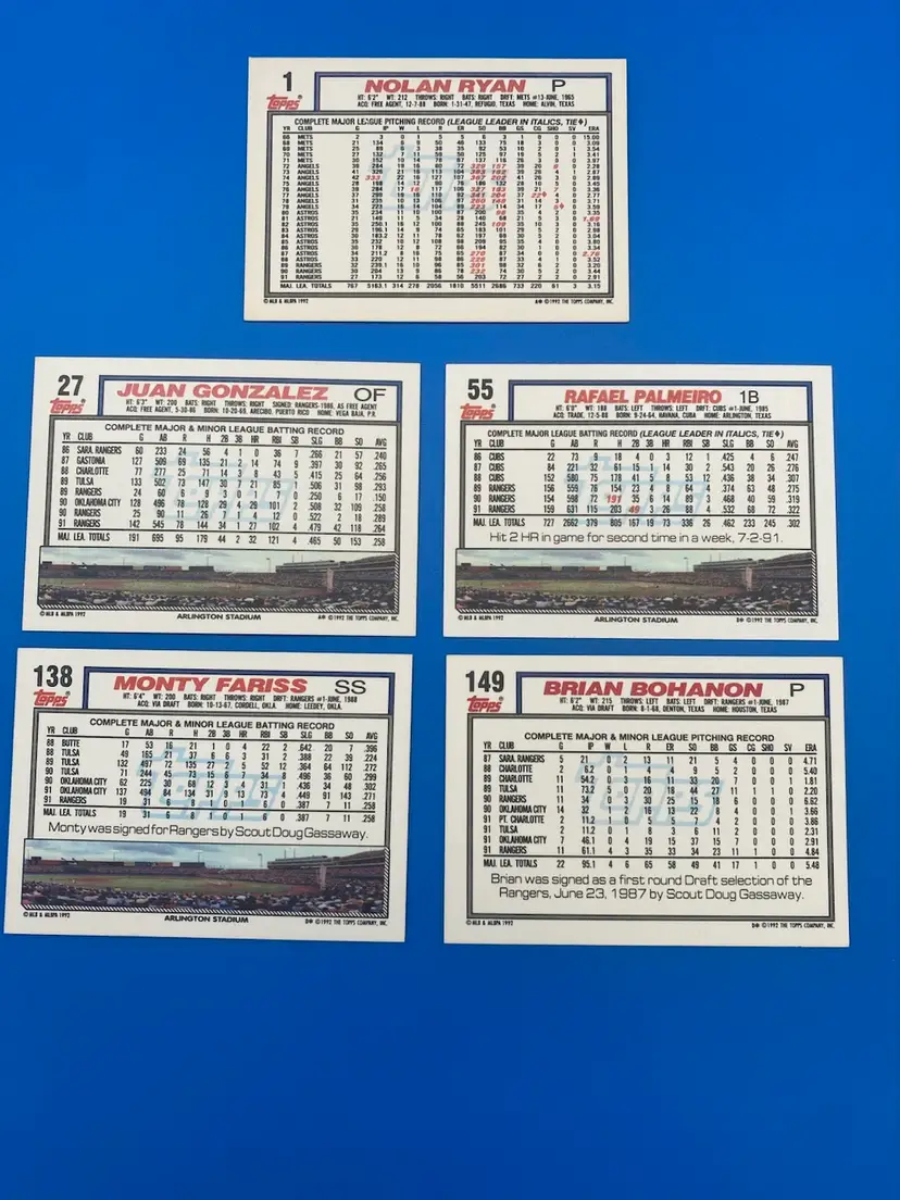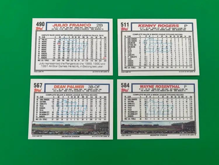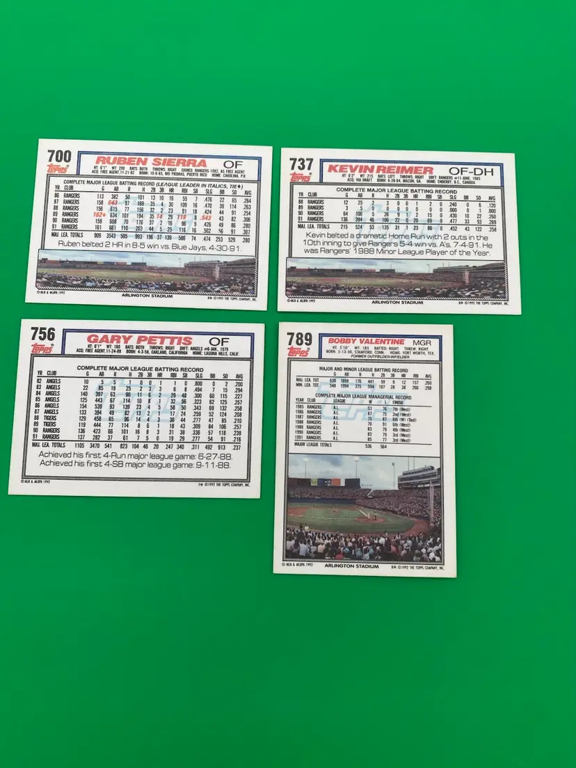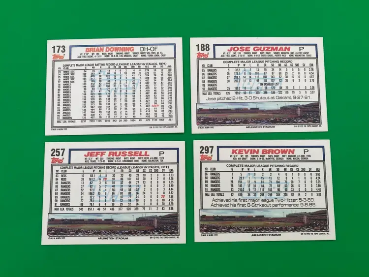 You are purchasing a lot of 21 different MLB Texas Rangers Trading Cards from the 1992 Topps line. These Cards are in overall great condition. See images for all of the Cards included in this Listing and their condition.
