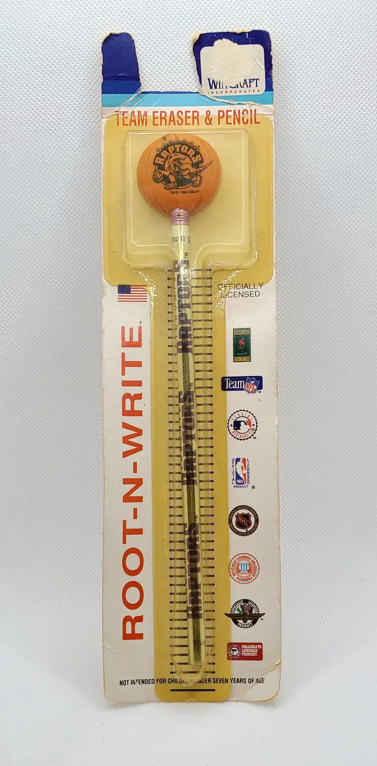 This listing is for a Vintage New Old Stock 1995 Toronto Raptors Root N Write NBA Team Eraser & Pencil by WinCraft. Never Used be in package.