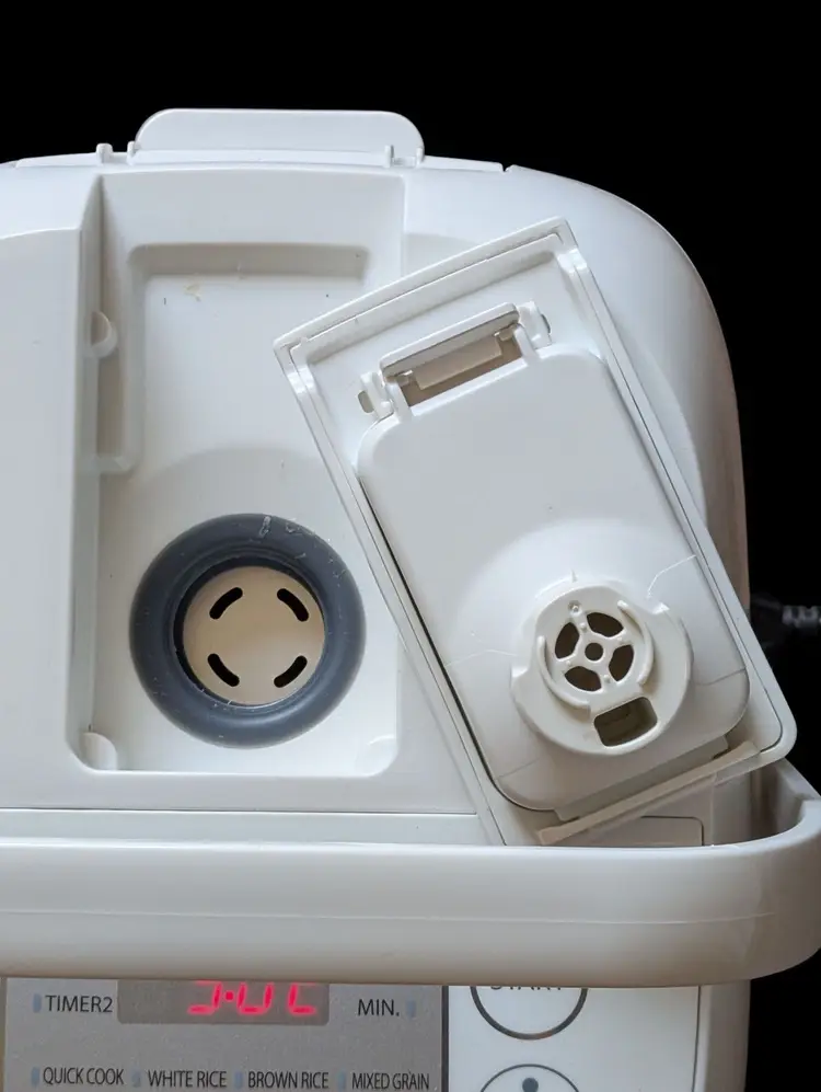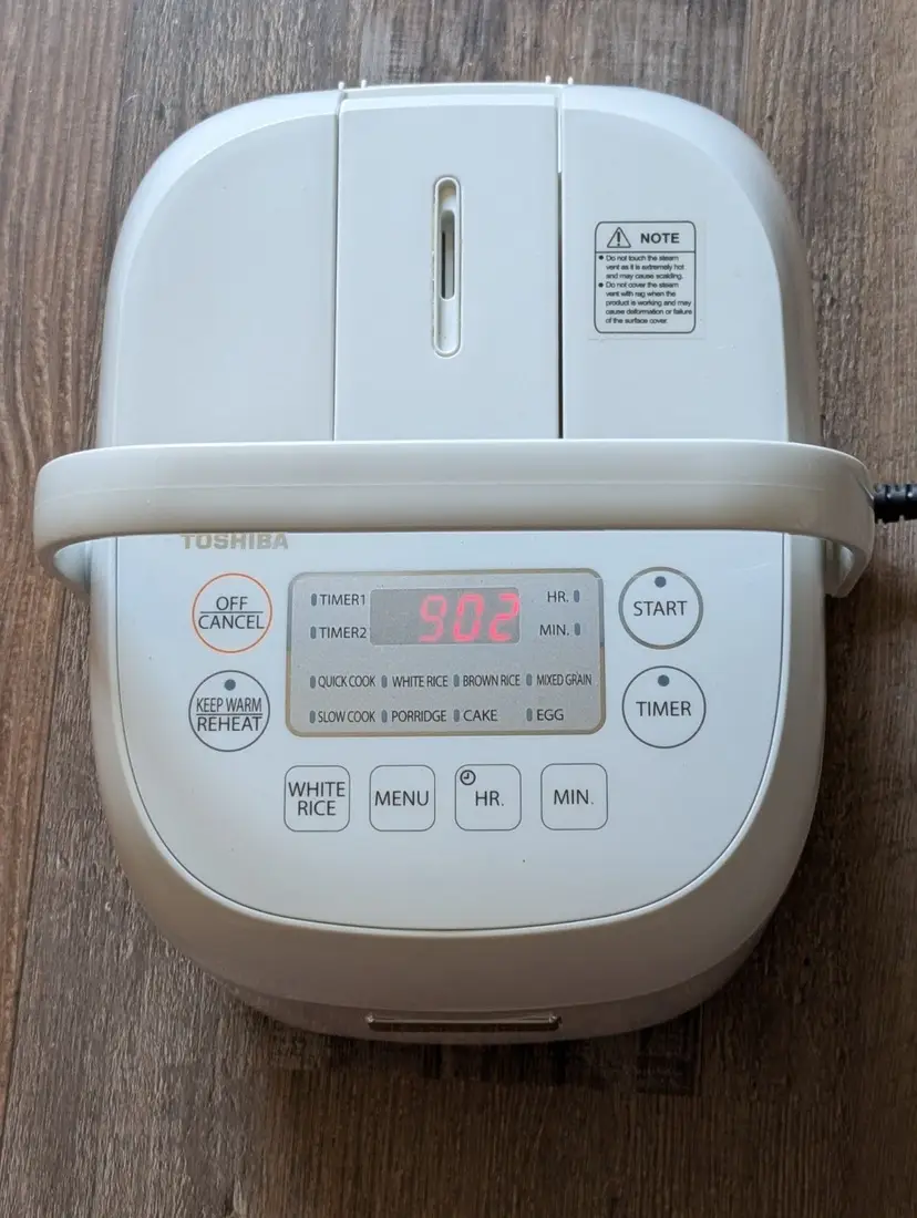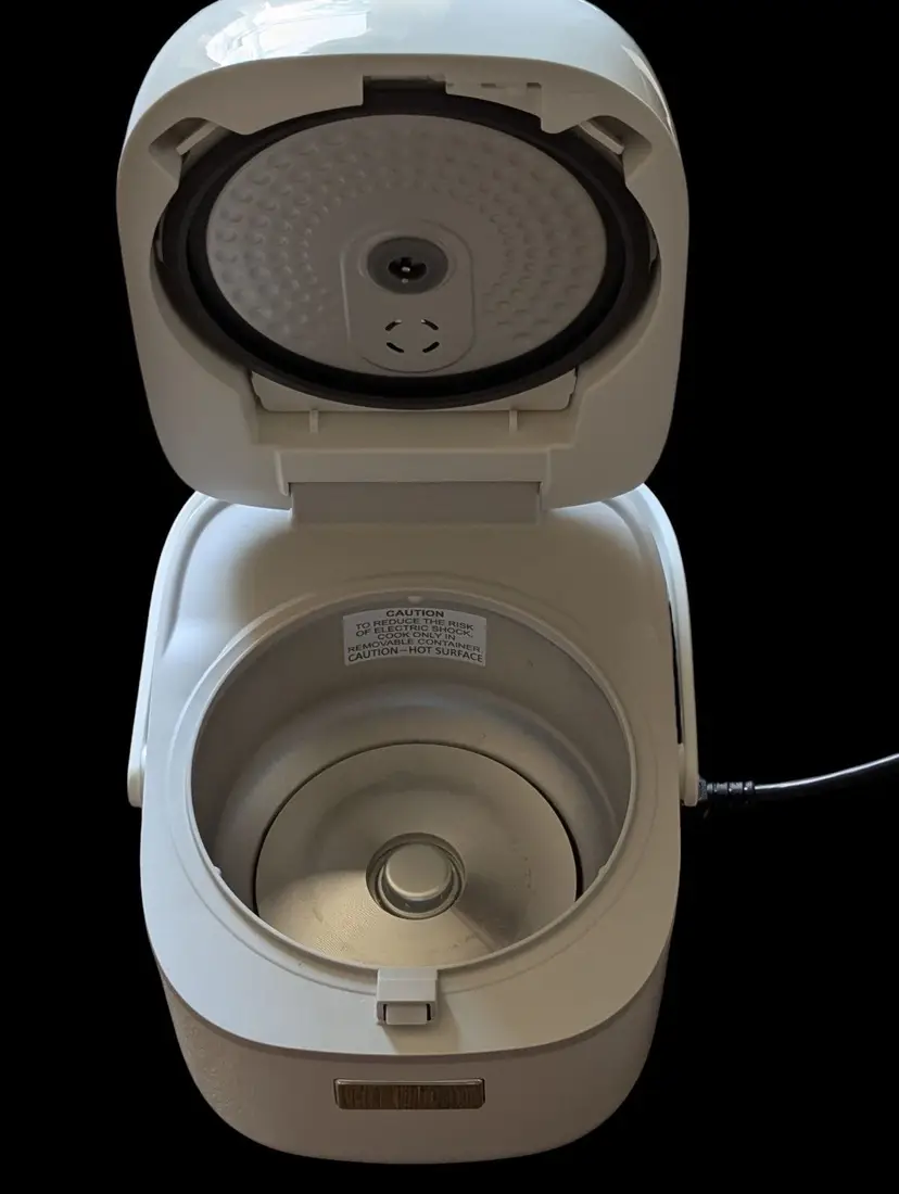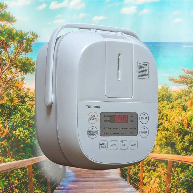 The Toshiba TRCS02 Rice Cooker is a sleek white unit made of ABS plastic, featuring an induction cooking method and 8 presets for customizable cooking settings. With a 3-cup capacity and 460W power, this rice cooker steamer is perfect for cooking rice and steaming vegetables with ease. The LED display and convenient reheat function make meal prep a breeze. The unit is compact at 8 inches tall and comes with a 28-inch cable length for easy placement in any kitchen. Made by Toshiba, a trusted brand, this rice cooker is a reliable addition to your home appliance collection. There is no inner pot included with this cooker.