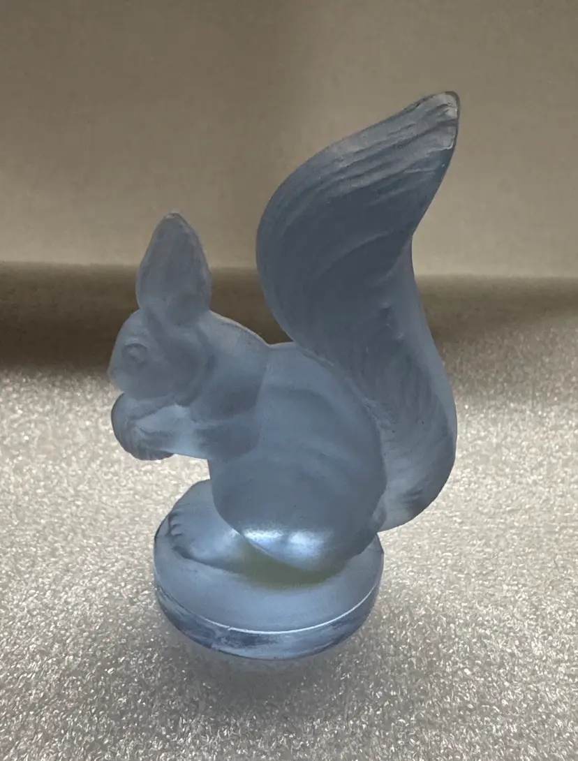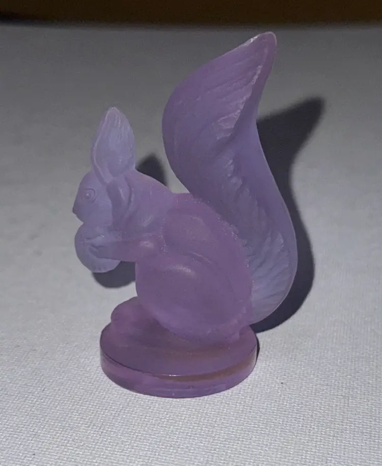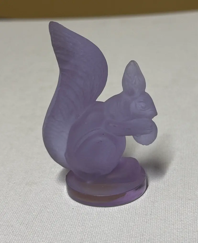 Charming purple squirrel figurine. Perfect for decor or collection. Toso Cesare Murano Neodymium Frosted Glass Blue to Purple Squirrel Figurine 3” tall Made in Italy Original tag Excellent condition with no breaks or chips (1170102525a)