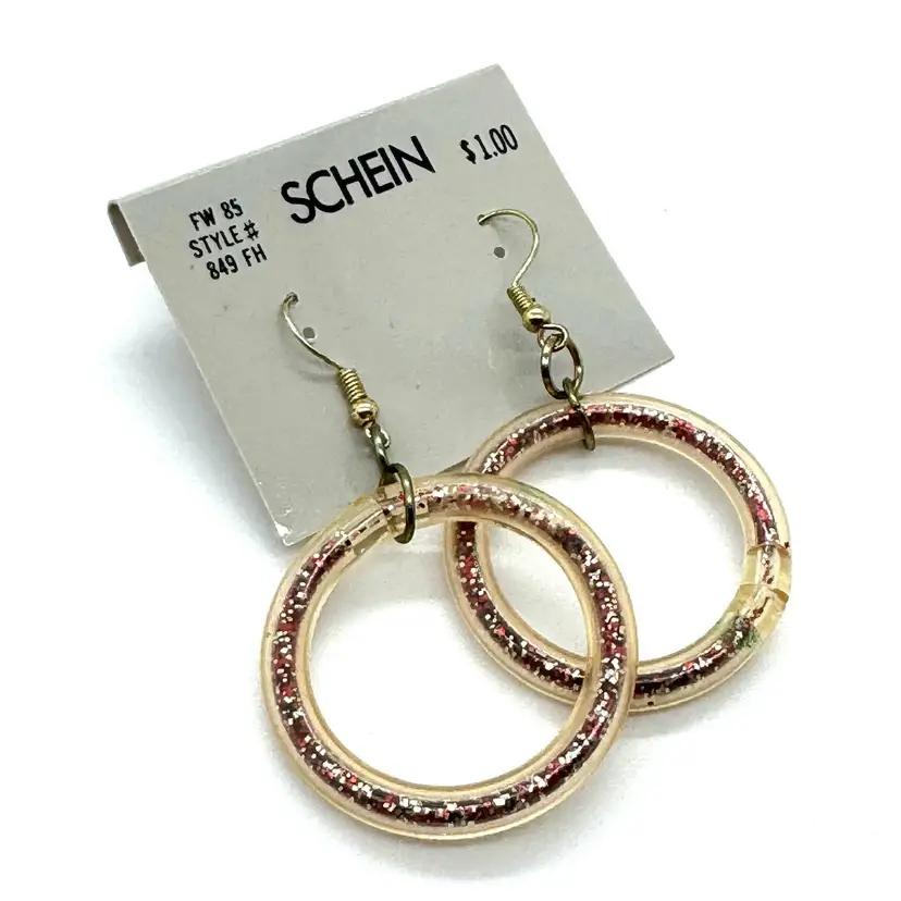 Rainbow reddish glitter jelly drop earrings in a larger size but amazing 80's reminscent style. You know you remember these! Each earring measures 2.25" in total length.