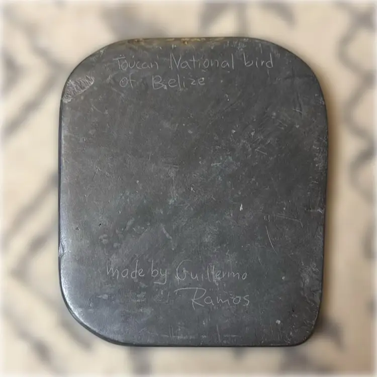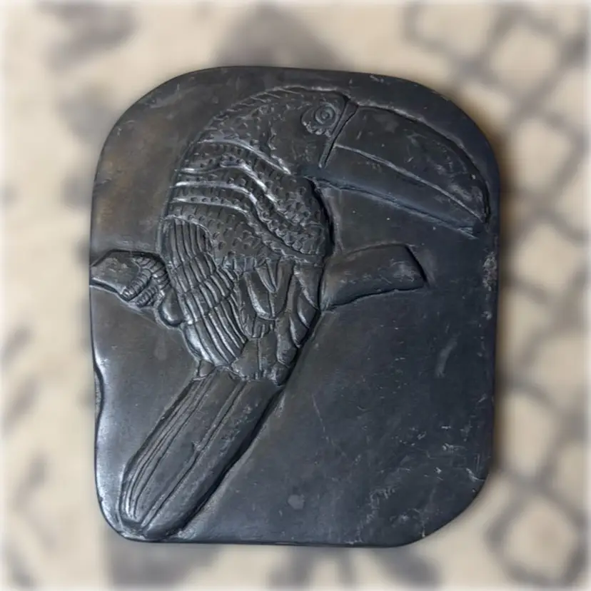 Toucan by Guillermo Ramos Art Carving on Slate - 6” tall and 5” wide.