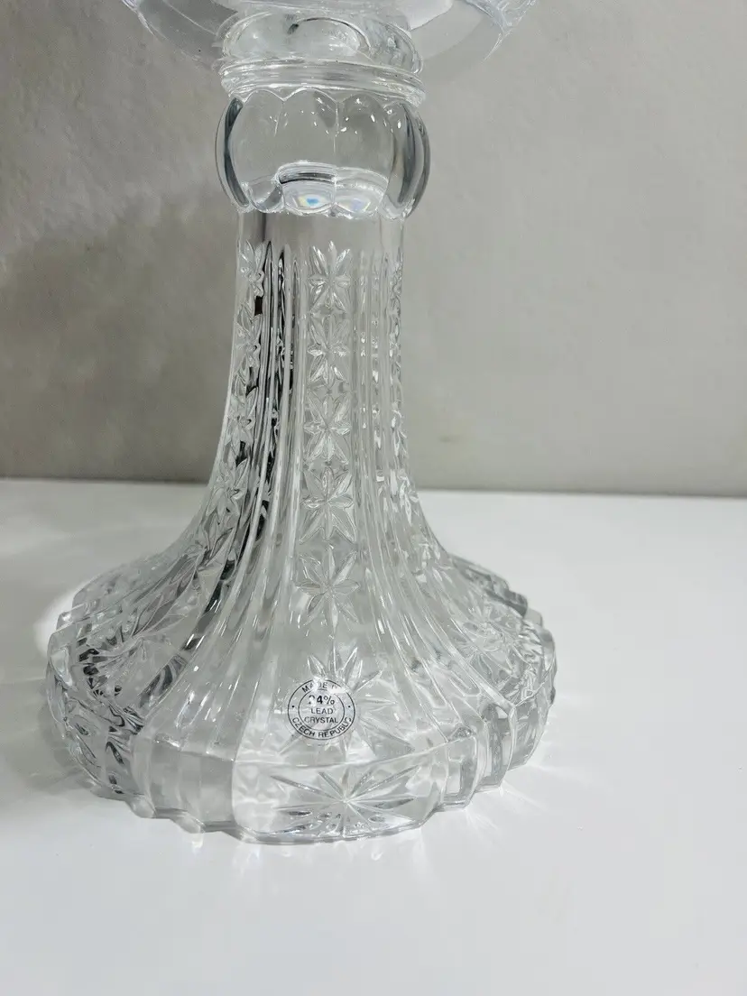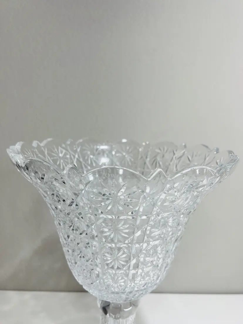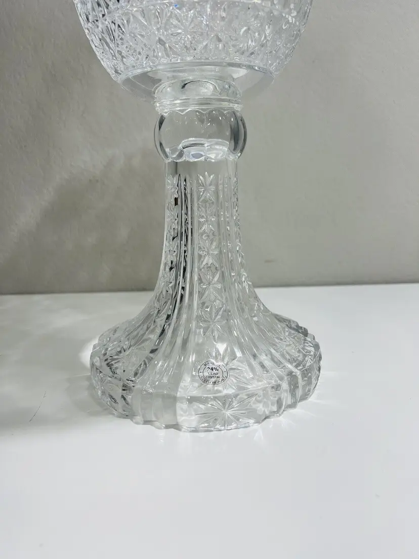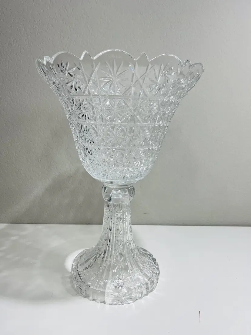 Item Width: 10 in Item Length: 14 in Item Height: 14 in Country/Region of Manufacture: United States Material: Crystal Glassmaking Technique: pressed glass Featured Refinements: Crystal Bowl Type of Glass: Crystal Item Weight: 5 lb Brand: Towle Style: Art Nouveau Color: Clear Signed: Yes Original/Licensed Reproduction: Original Room: Any Room Backstamp: Incised Theme: English Type: Centerpiece Bowl Original/Reproduction: Vintage Original