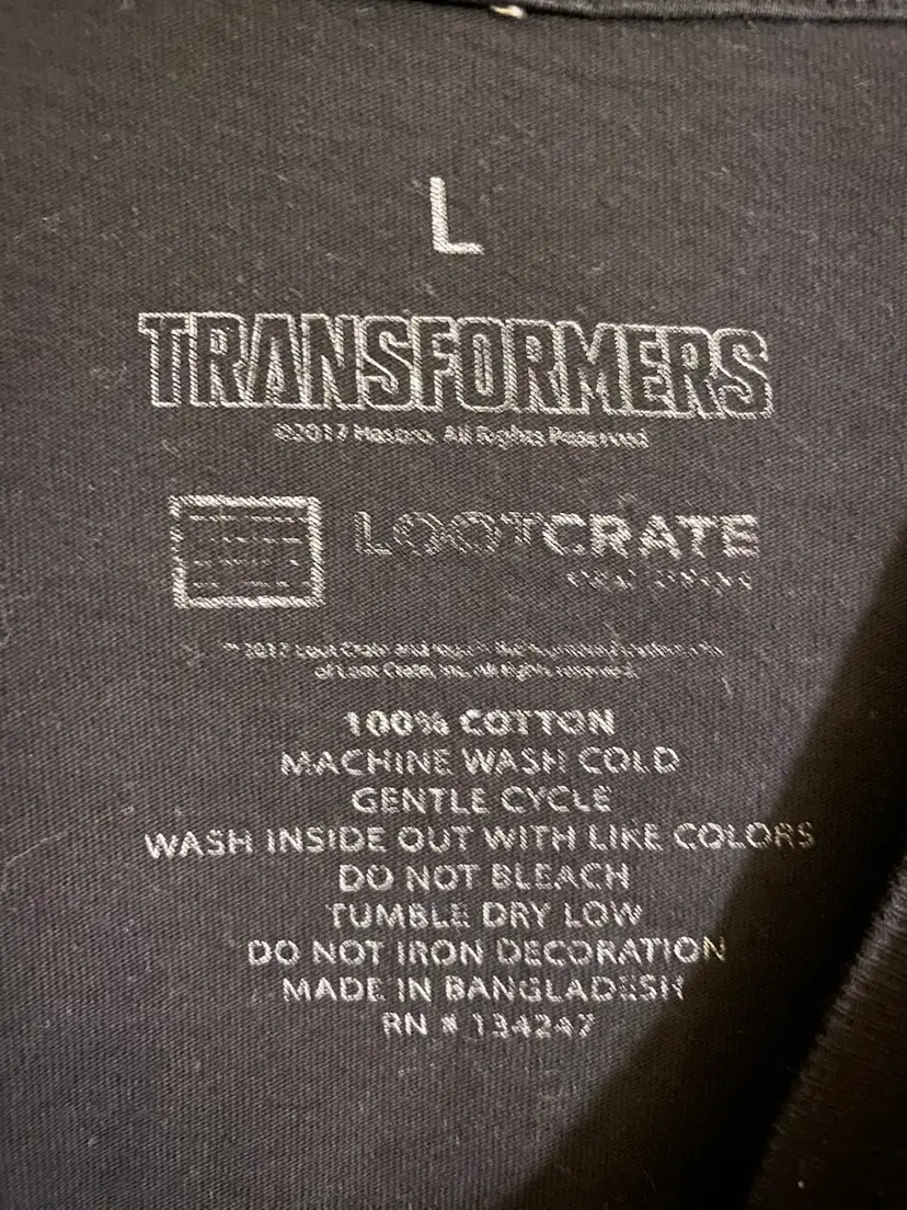 You are purchasing one Size Large Black Optimus Prime 1984 Long Sleeve Shirt by Hasbro and Loot Crate from 2017. This Shirt is in great condition with no rips, stains or holes.
