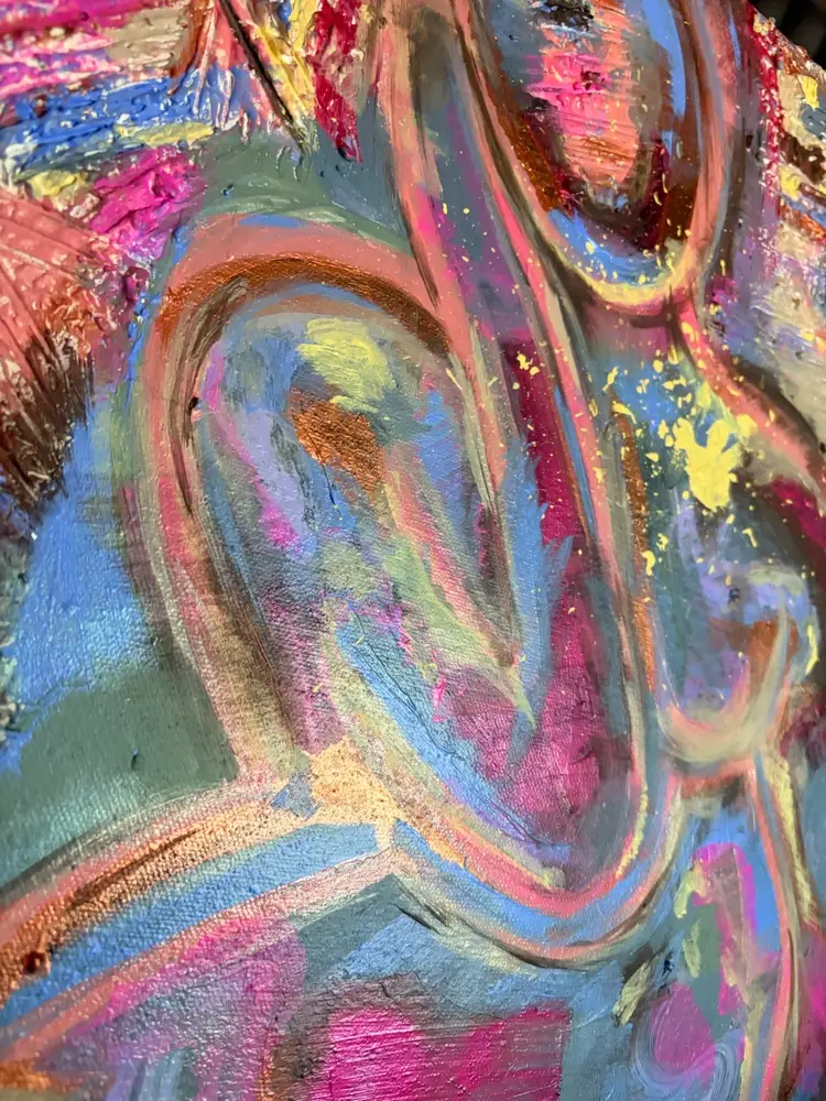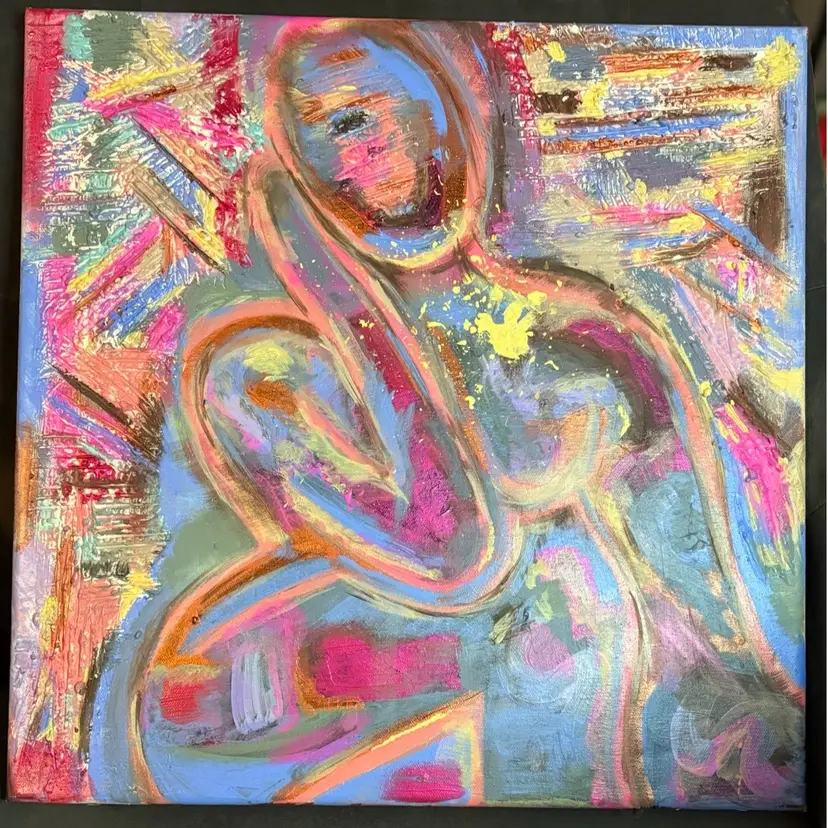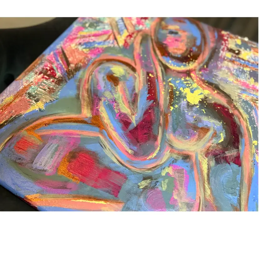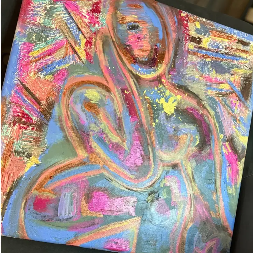 Made with acryclic paint, as well as plaster to give texture. Coated for durability.
