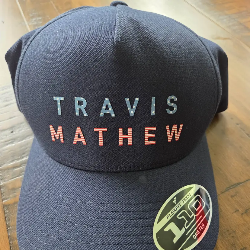 This listing is for one brand new Travis Mathew snapback hat. Navy Blue with leather patch. Nice light breathable material.