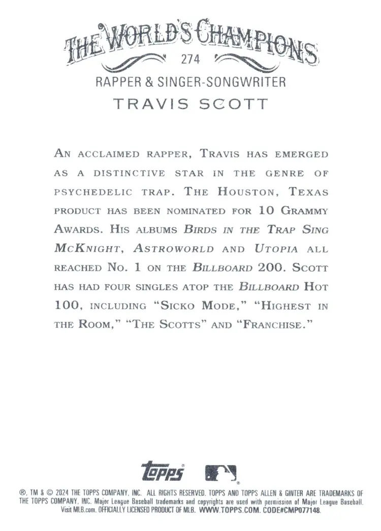 Travis Scott Baseball Card 2024 Topps Allen & Ginter