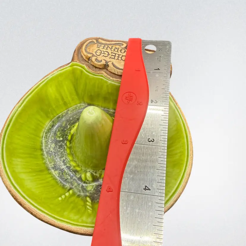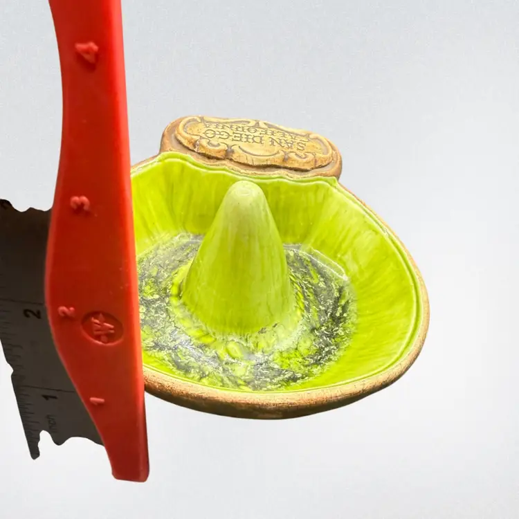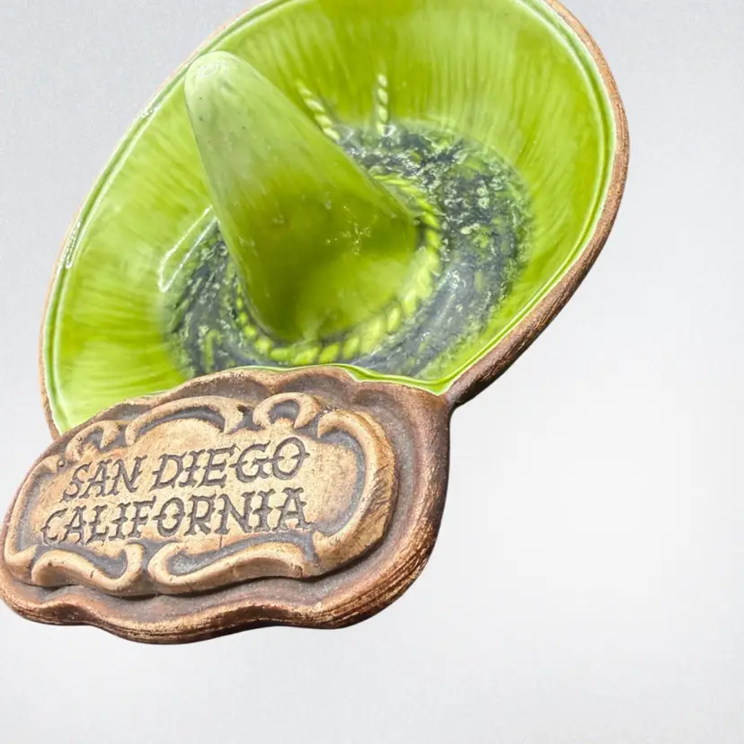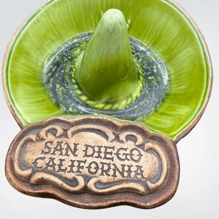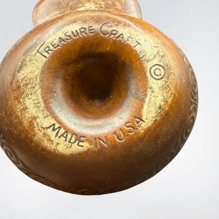 Treasure craft is made in the USA. 1950s souvenirs piece. The brown glaze on the bottom has some minor wear. In good condition.