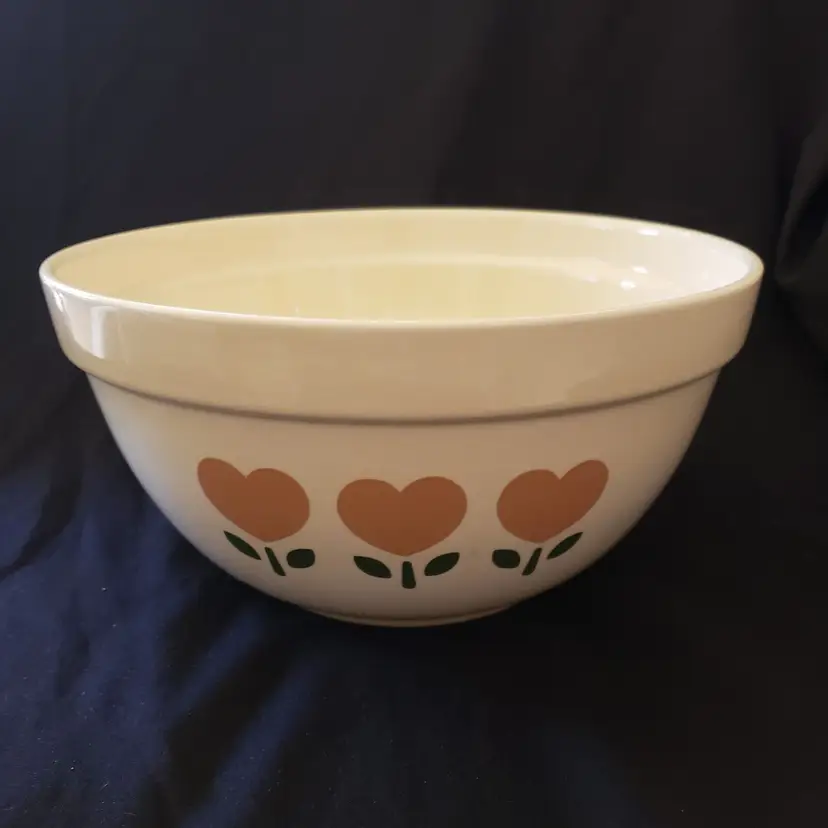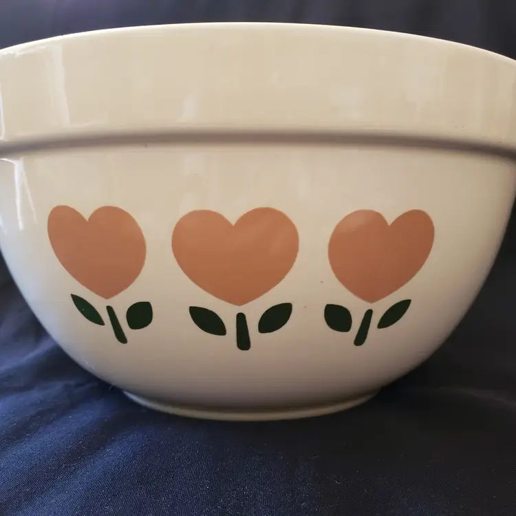 Origin: America Pattern: Tulip HEARTS Shape: Round Color: Multicolor Material: Pottery Set Includes: Bowl, Serving Bowl Vintage: Yes Brand: Treasure Craft Type: Mixing Bowl Original/Licensed Reproduction: Original Theme: Hearts Production Style: Art Pottery Production Technique: Pottery Country/Region of Manufacture: United States Backstamp: Impressed Finish: Glossy Handmade: No
