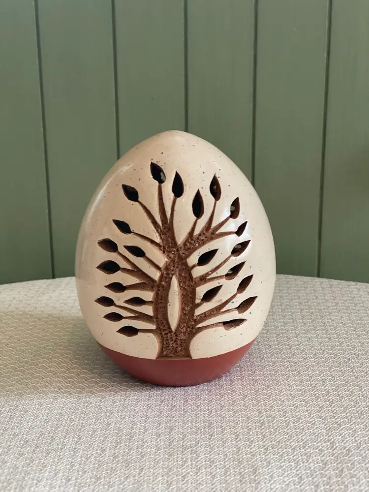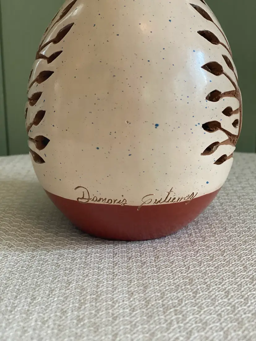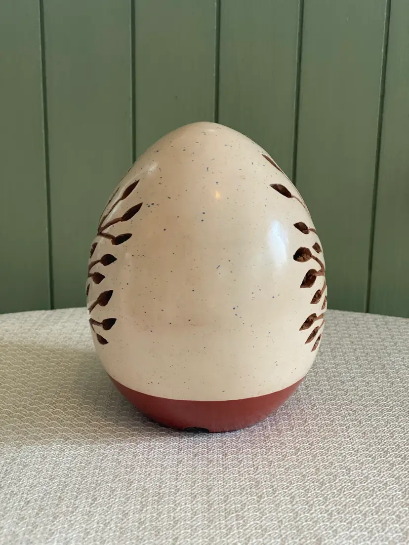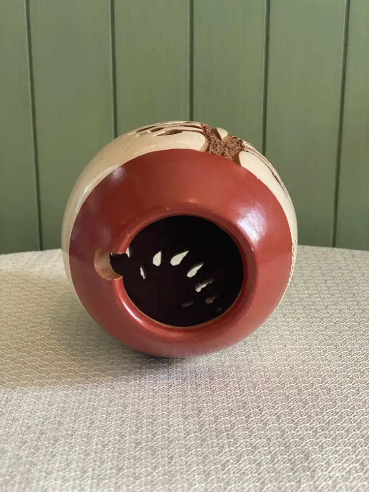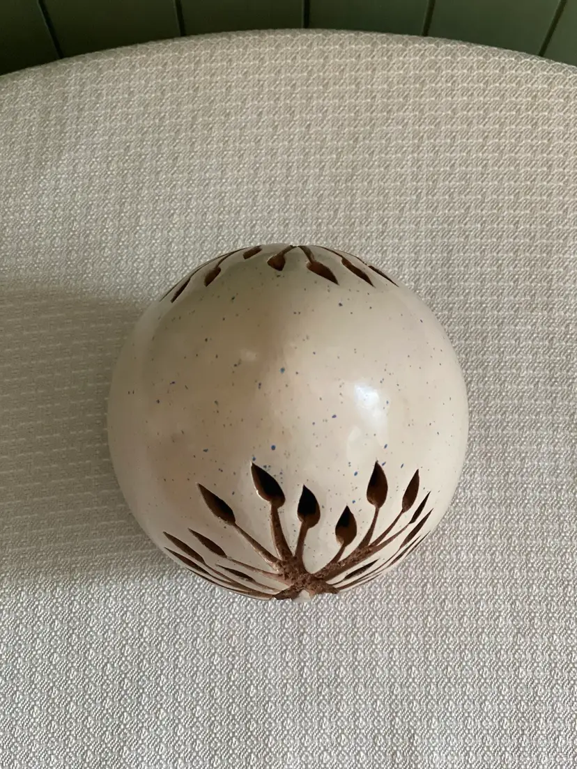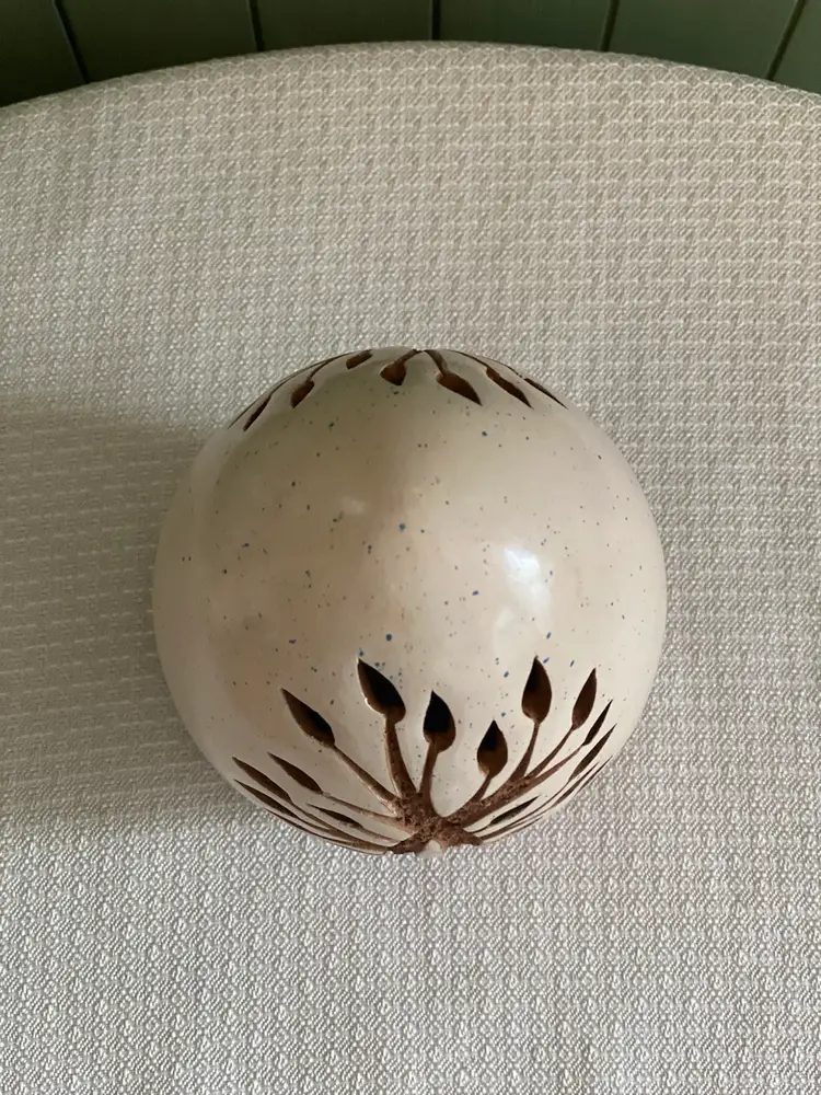 This beautiful light cover is 5” tall and about 3 3/4” wide. It’s in very good condition, no chips or cracks. It’s signed by the artist.
