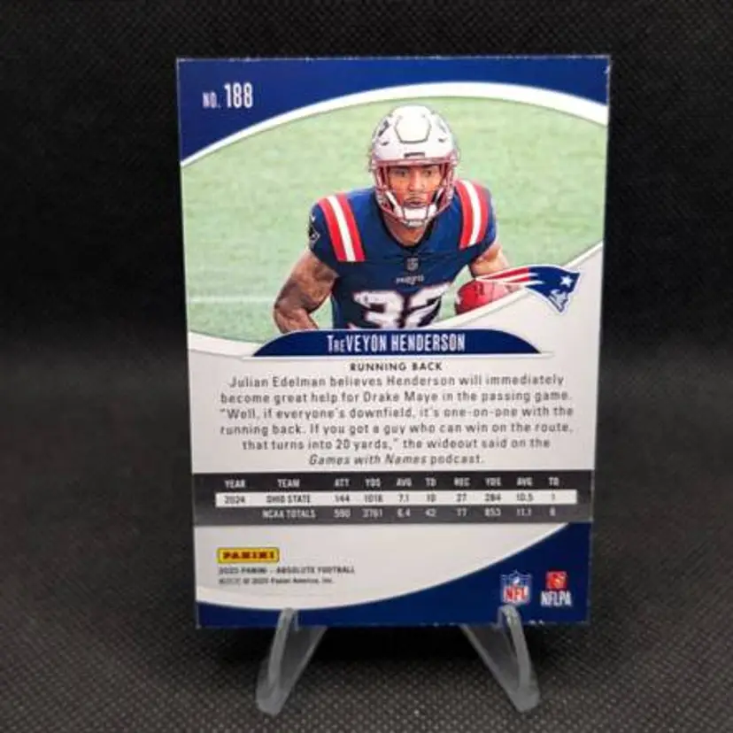 TreVeyon Henderson 2025 Panini Absolute Rookie Card RC #188 - New England Patriots