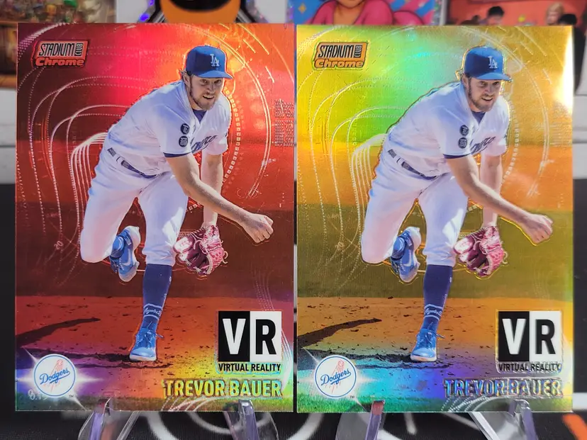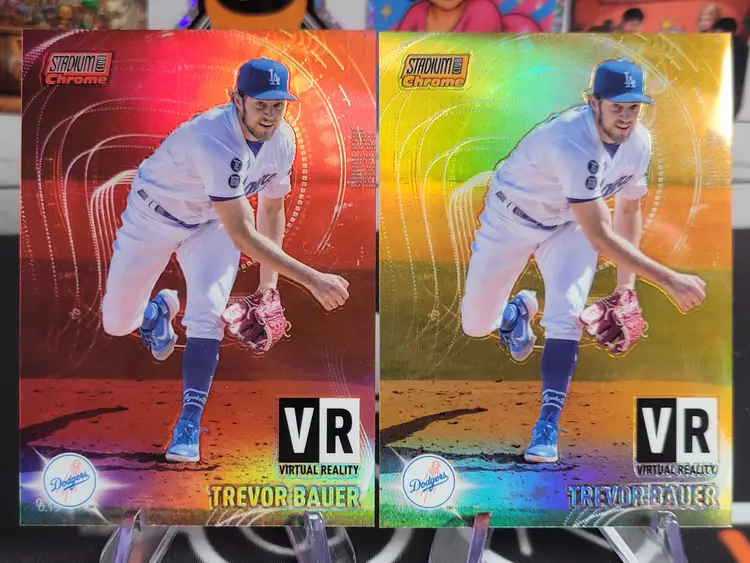 Two-card lot featuring high-scarcity refractors from the 2021 Topps Stadium Club Chrome “Virtual Reality” release: