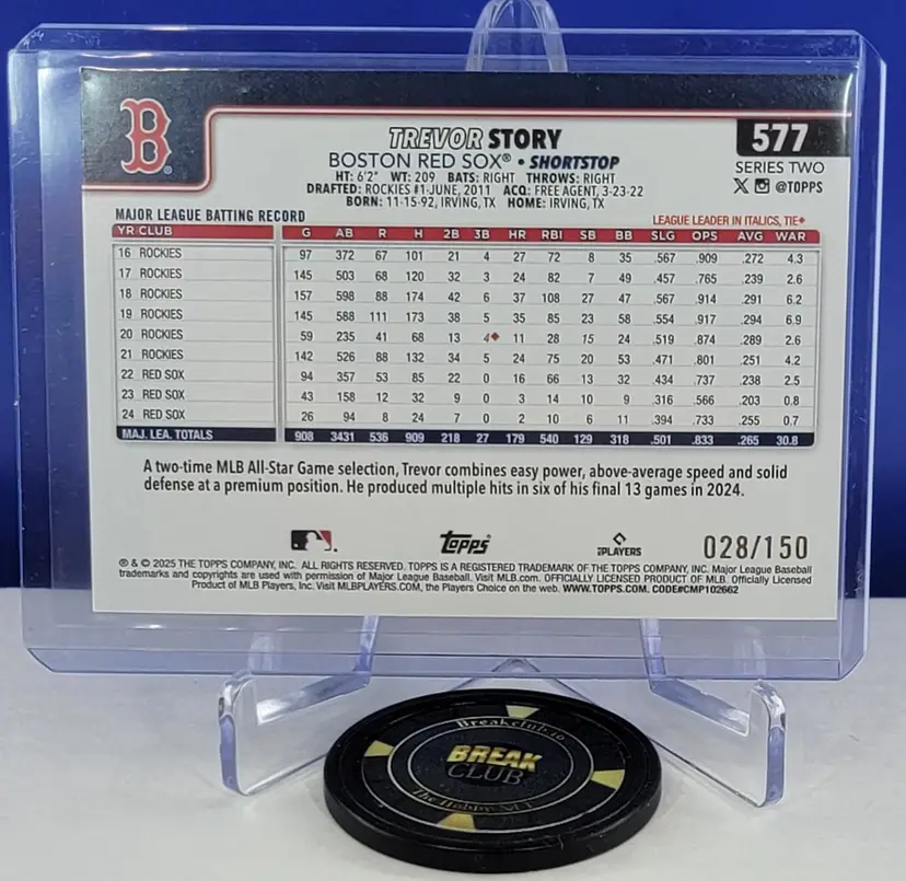 Trevor Story 2025 Topps Series 2 #577 Blue Foil /150 Boston Red Sox