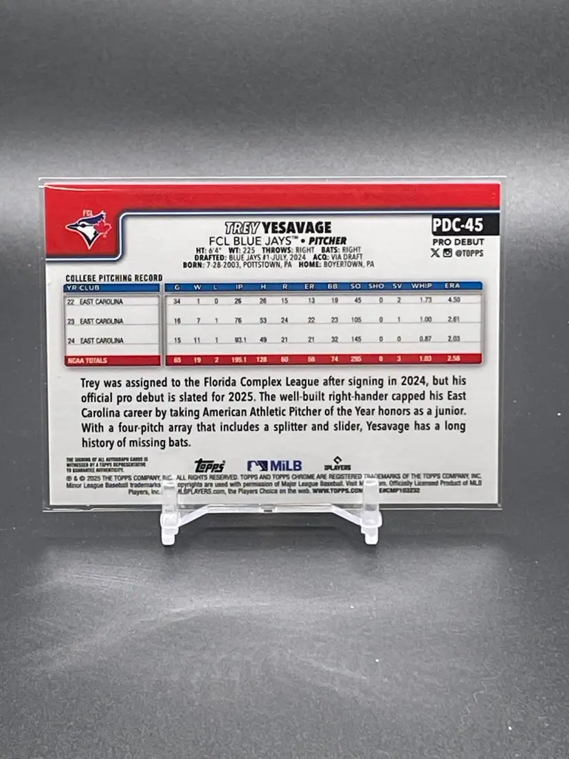 Trey Yesavage 2025 Pro Debut Orange Auto /25 - Toronto Blue Jays