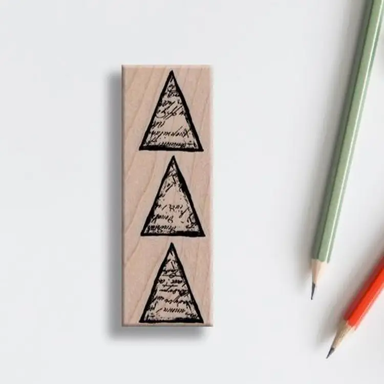 Triangles With Writing Background Texture Rubber Stamp Wood mounted Red Rubber Size: 1-1/4 x 3-1/4 inches Red rubber Brand new/unused • Use for junk journaling, card making, scrapbooking and other fun craft projects. • First purchase on District? Use this code for $5 off a $10 min purchase. ALOHAG34