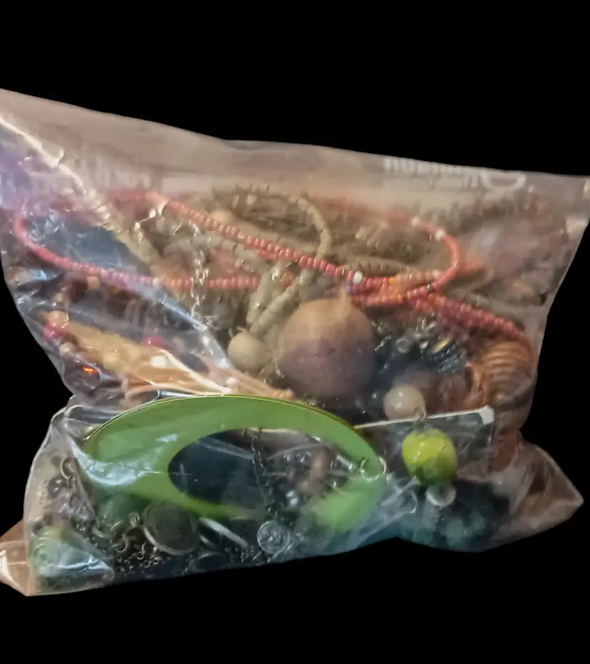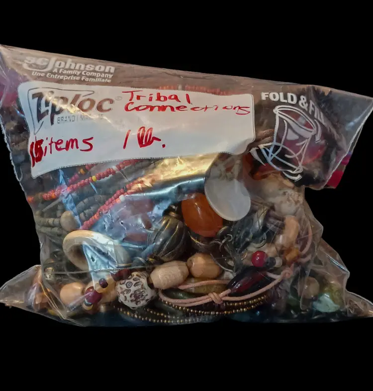 LET'S HAVE A LITTLE FUN! I have curated multiple 1 lb MYSTERY bags of Jewelry. The "Tribal Connections" collection includes 15 pieces, including 3 pairs of earrings, 8 necklaces, and 4 bracelets. The vintage/modern mix adds a unique touch to this collection. Each piece in this mixed lot is versatile enough for any occasion and offers coordinating accessories without the matchy-matchy look. This collection is a must-have for any fashionista looking for a unique addition to their accessory collection. What a deal!