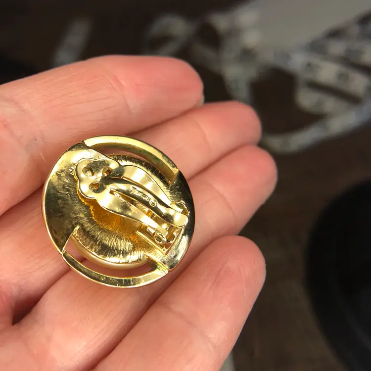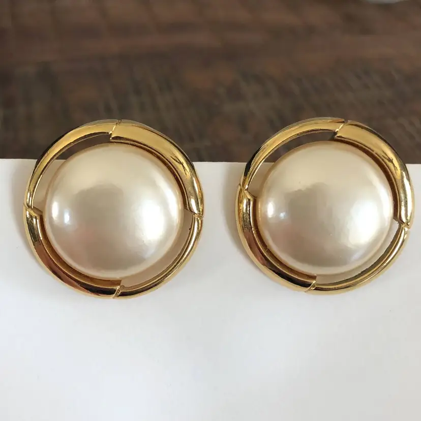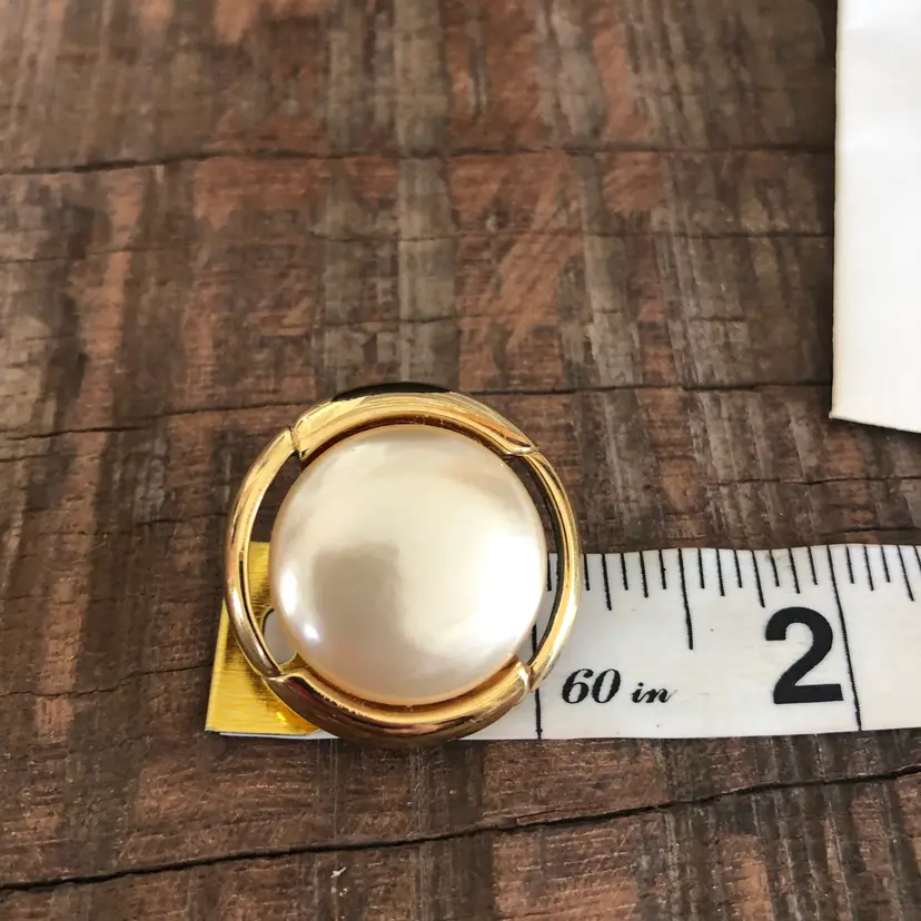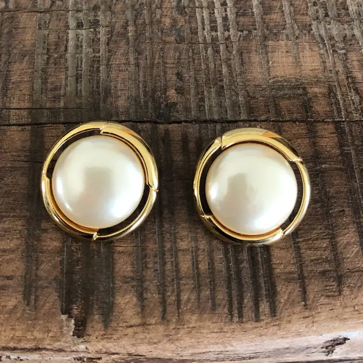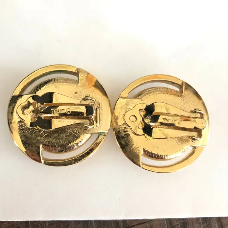 Trifari Gold Tone Faux Pearl Clip On Earrings Signed Elegant Gorgeous Metal Excellent used condition Measurements in photos (Approximate) Please check measurements to avoid returns Colors and textures may vary slightly from photos. Smoke-free home Don’t hesitate to ask any questions you may have. Thank you!